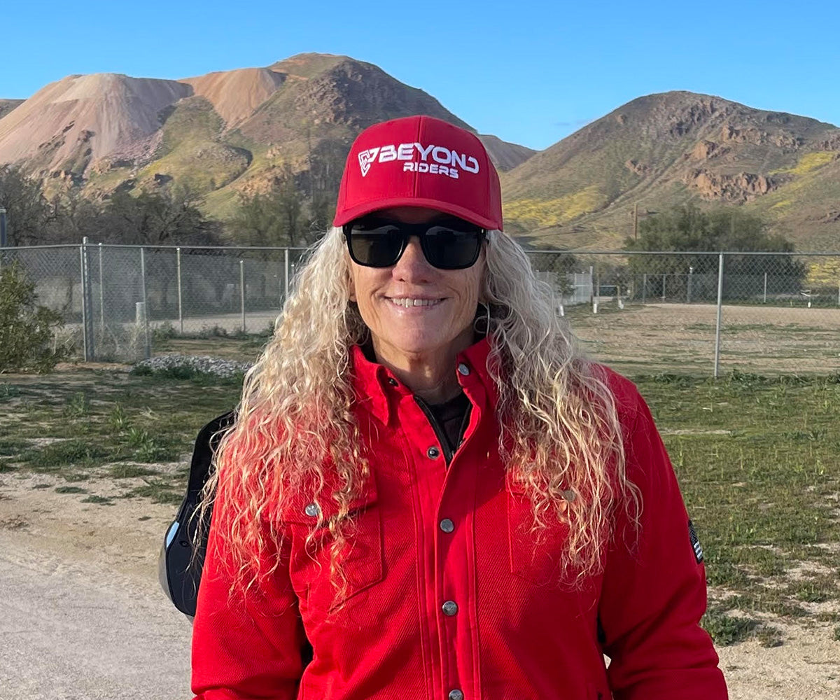 With every passing year, experience grows - and so does the importance of trusted gear. Lori knows her miles ahead will be ridden strong and safe… in her red Beyond Riders shirt.
