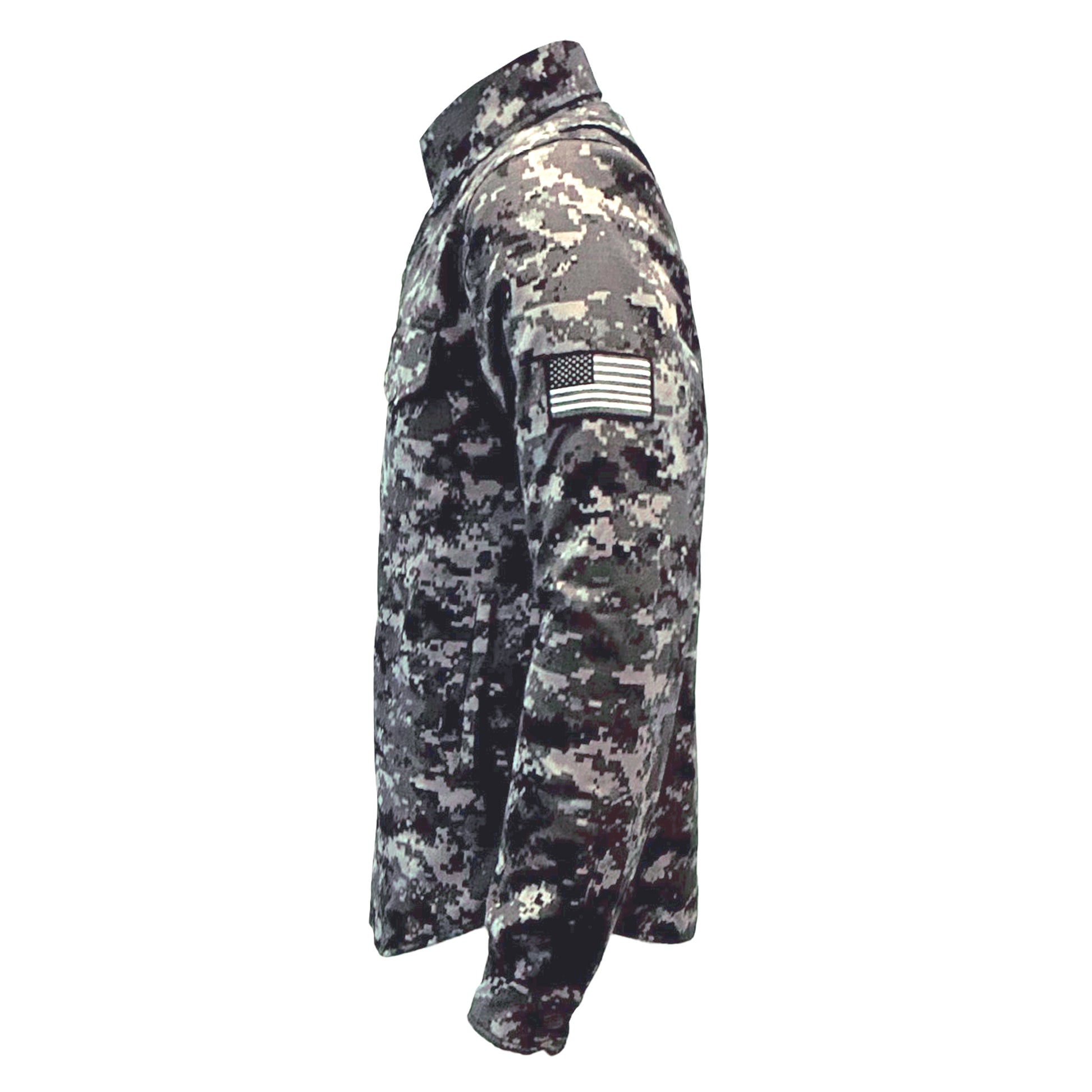 - Outer Layer: A durable mix of 60% Polyester and 40% Cotton in a light camouflage pattern.