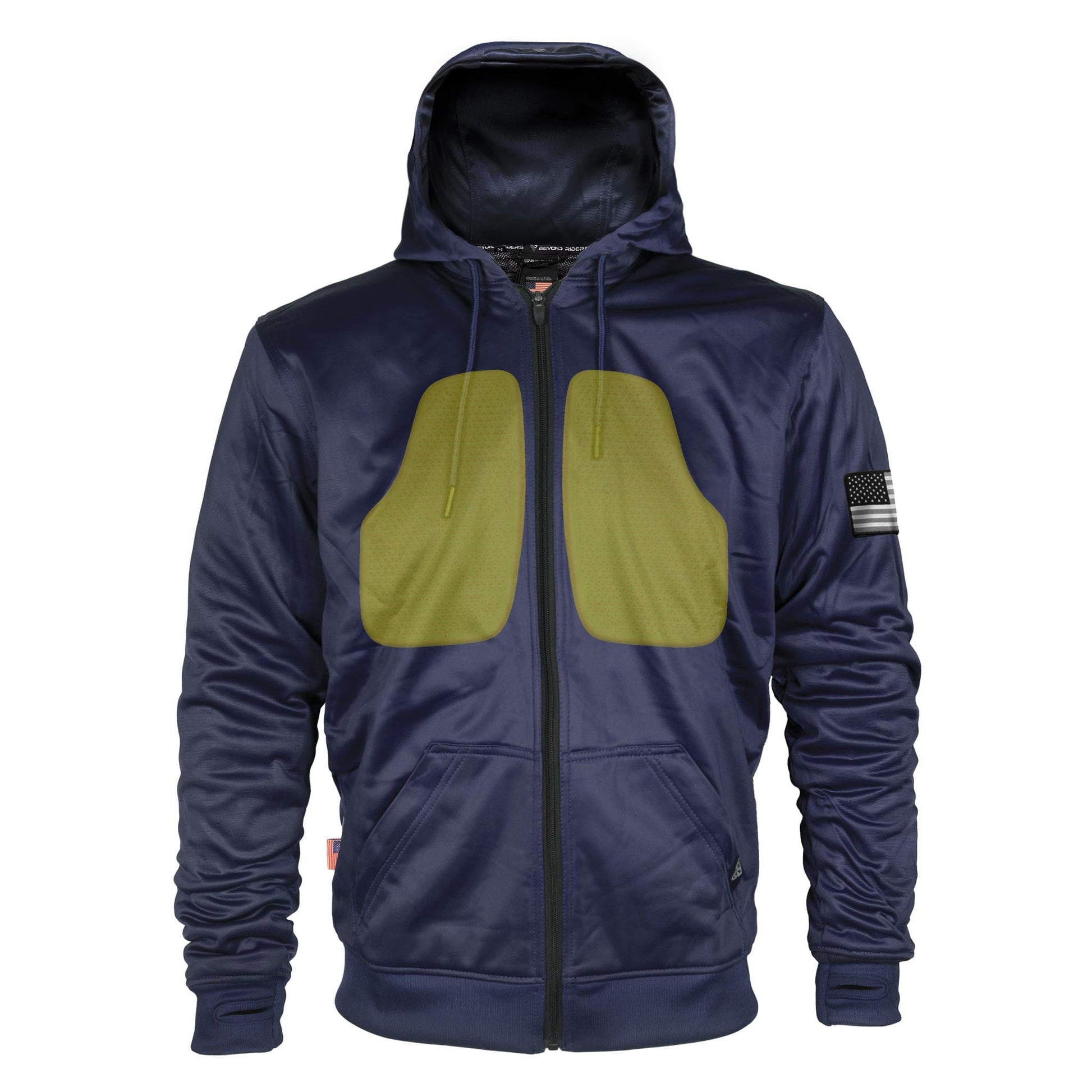 Step into the realm of advanced riding gear with the Beyond Riders Dark Navy Blue Solid Ultra Protective Hoodie. Fully outfitted with Level 1 Pads and enhanced with features for the modern rider, this unisex hoodie is your shield against the elements and the asphalt.
