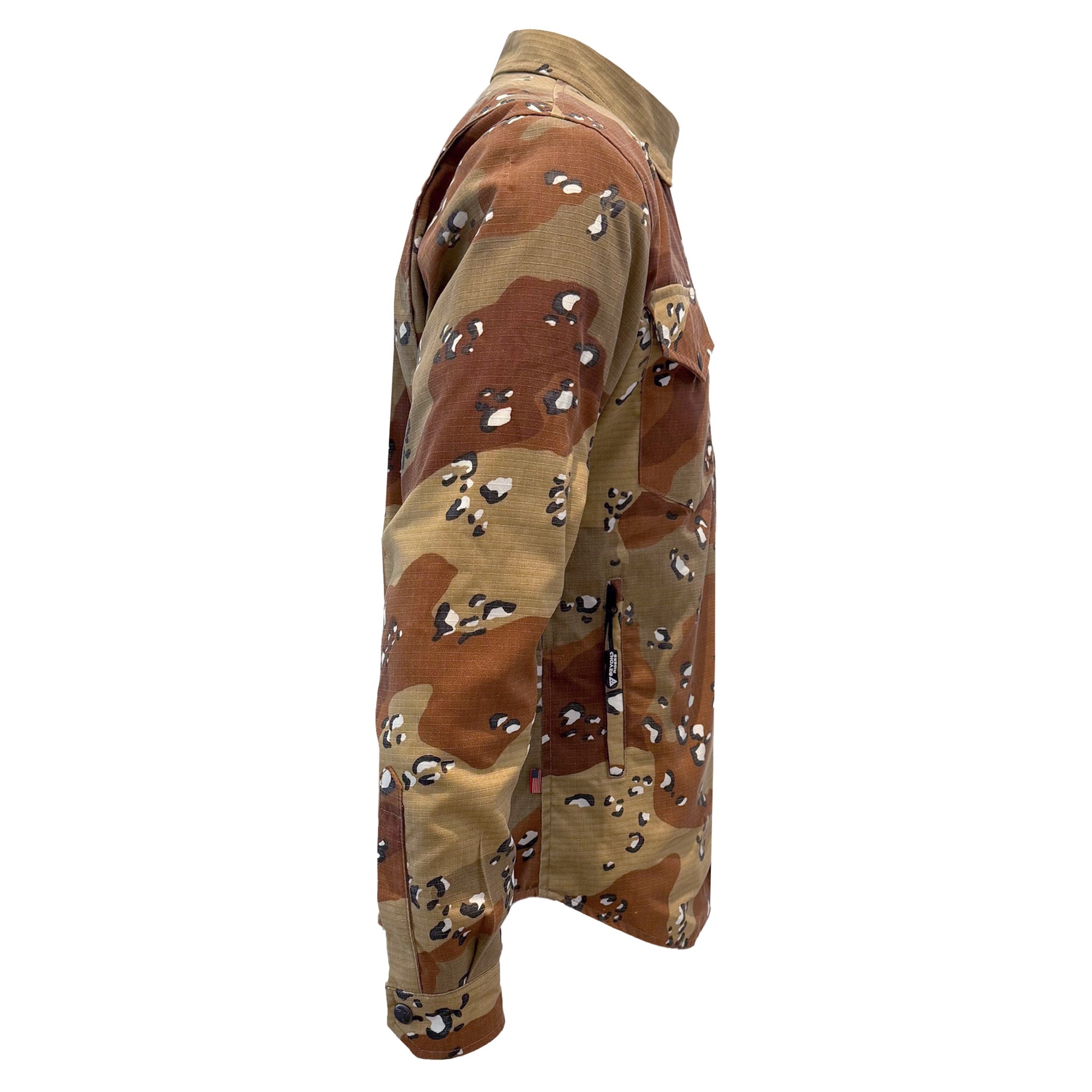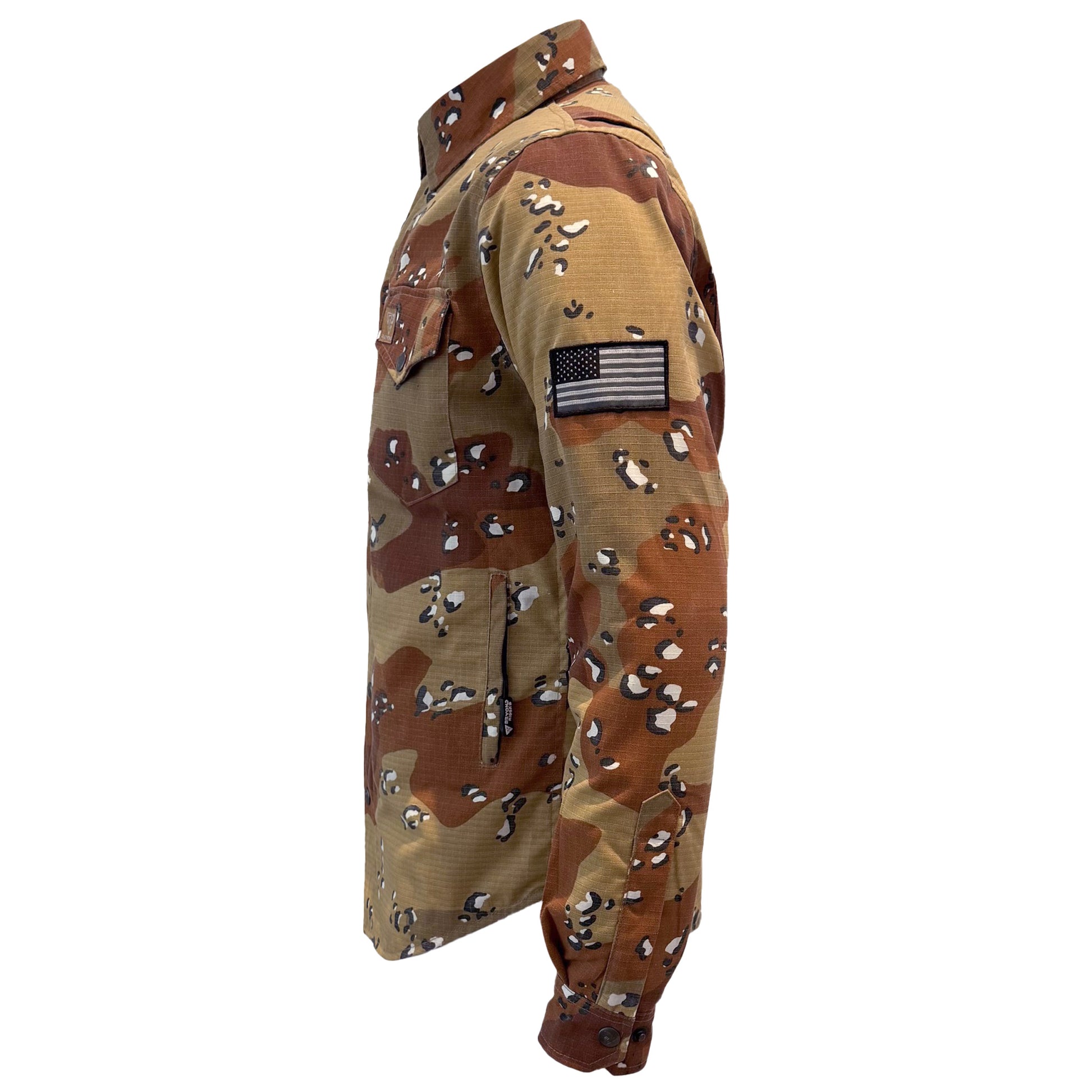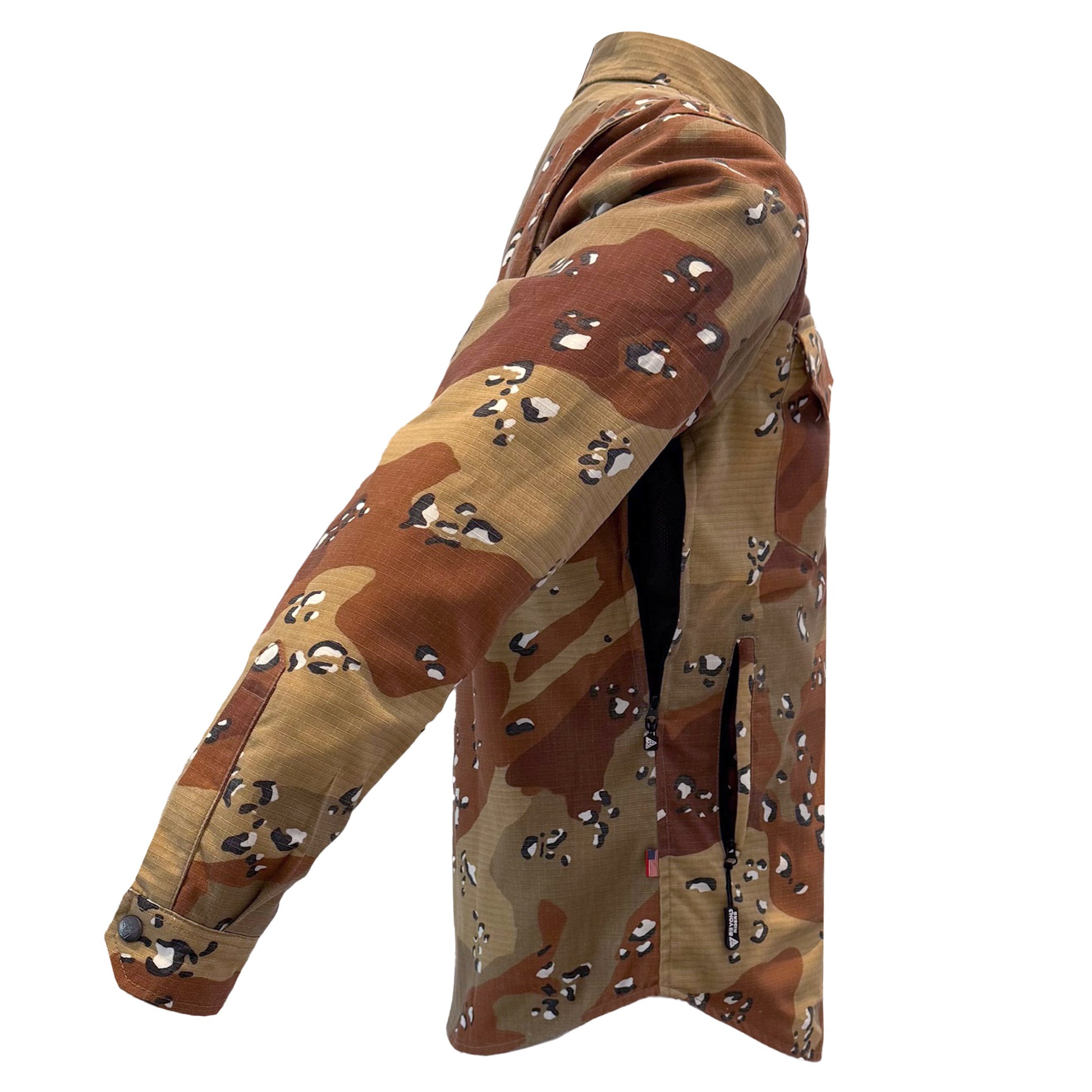 Dive into the rugged world of riding with the "Dagger Two" Desert Protective Camouflage Shirt with Level 1 pads included for men. Meticulously crafted for those who seek adventure, this shirt combines a unique camouflage aesthetic with a full Kevlar lining, offering unparalleled protection and comfort. Made from a robust 60% Polyester and 40% Cotton blend, it's the ultimate shield for the bold male rider who values both style and comprehensive safety.