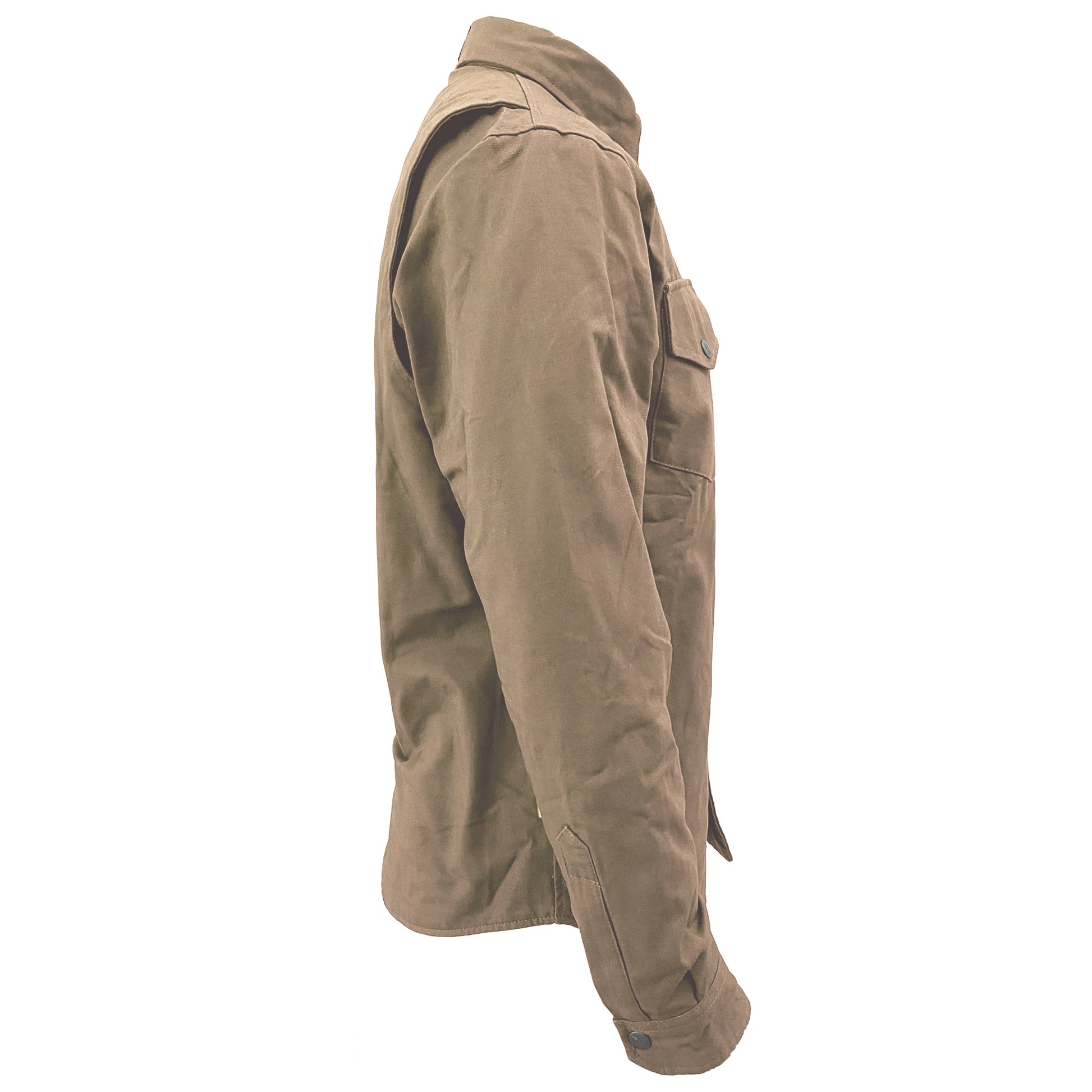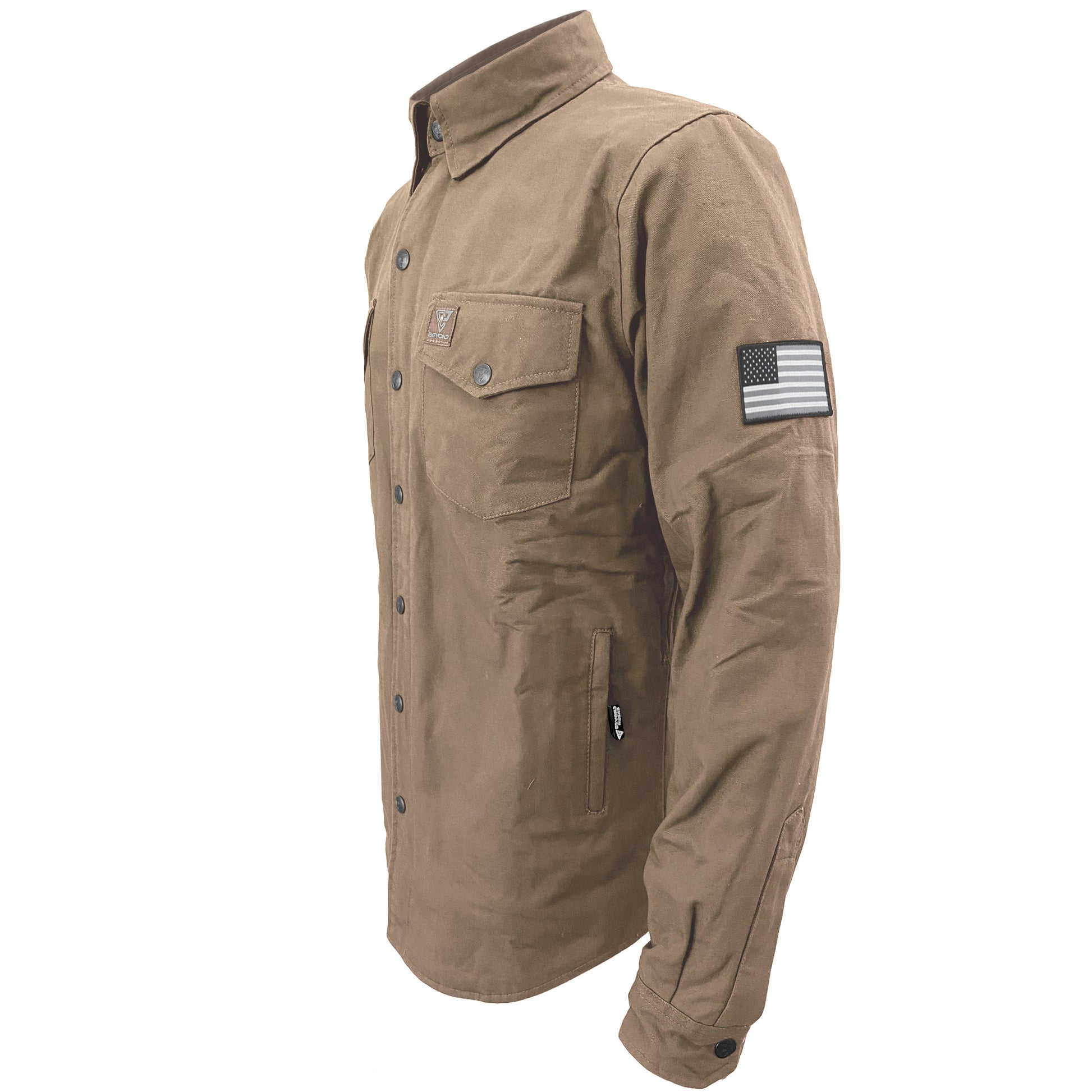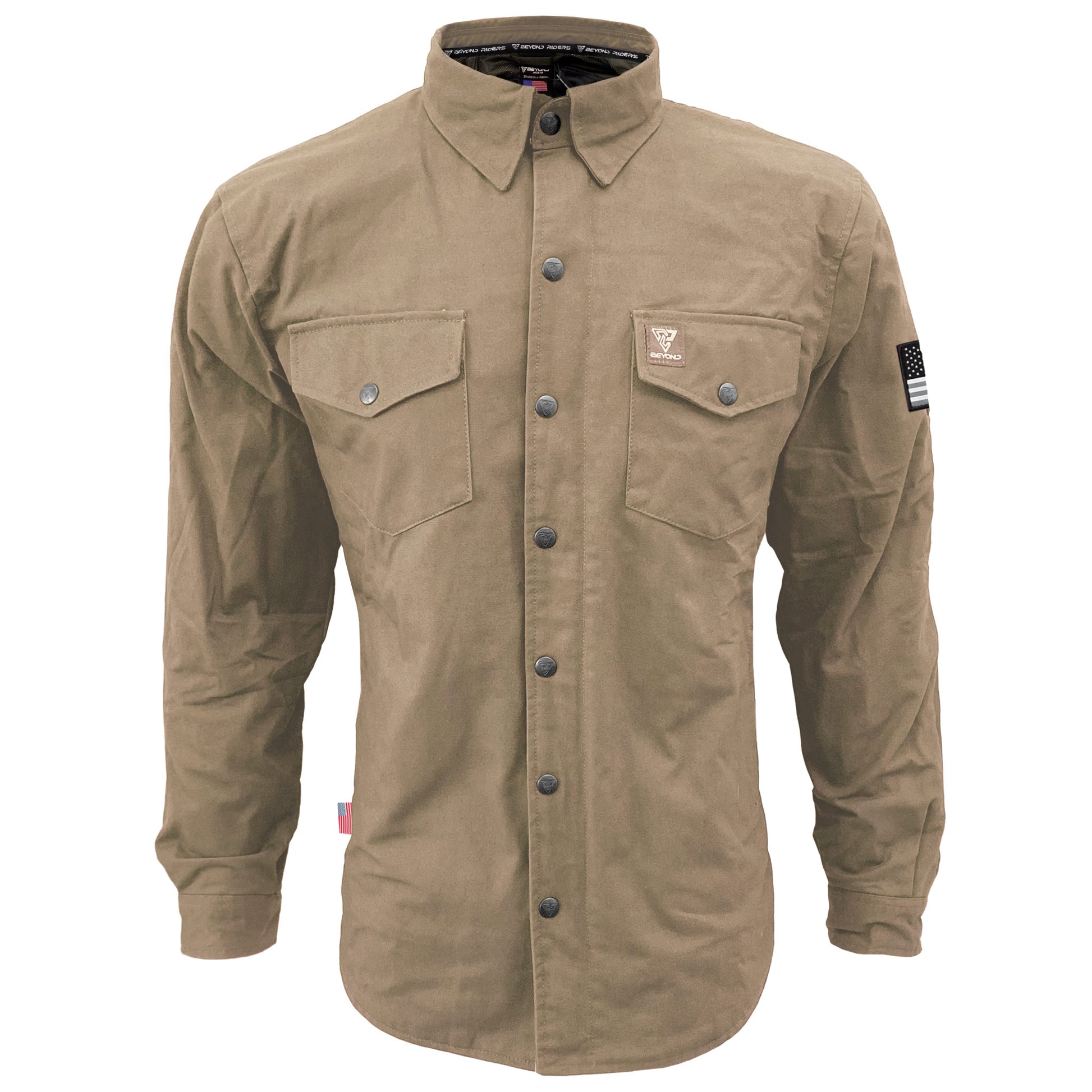 The Men's Protective Canvas Jacket in Camel with Level 1 pads included is designed for those who seek both style and safety in their journey. This jacket from Beyond Riders is not only a fashion statement but also a practical choice for riders of motorized vehicles. Whether cruising city streets or exploring off the beaten path, this jacket ensures you're ready for any adventure that comes your way.