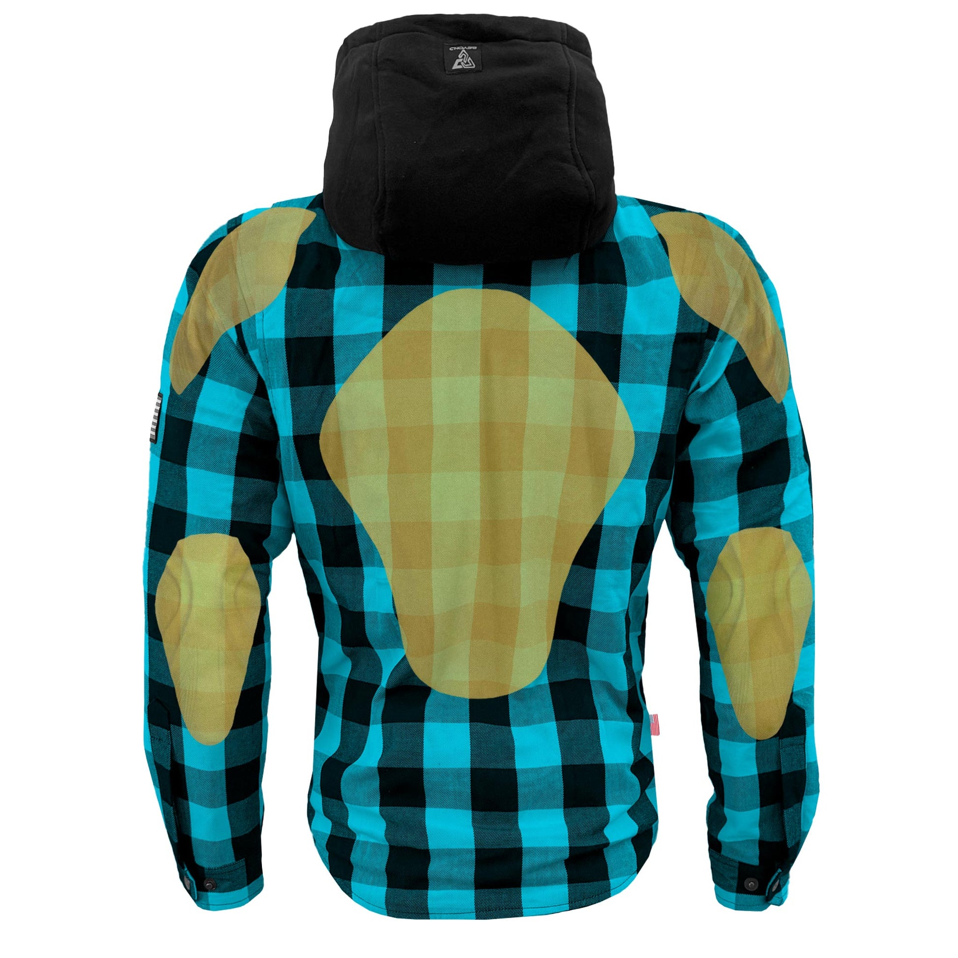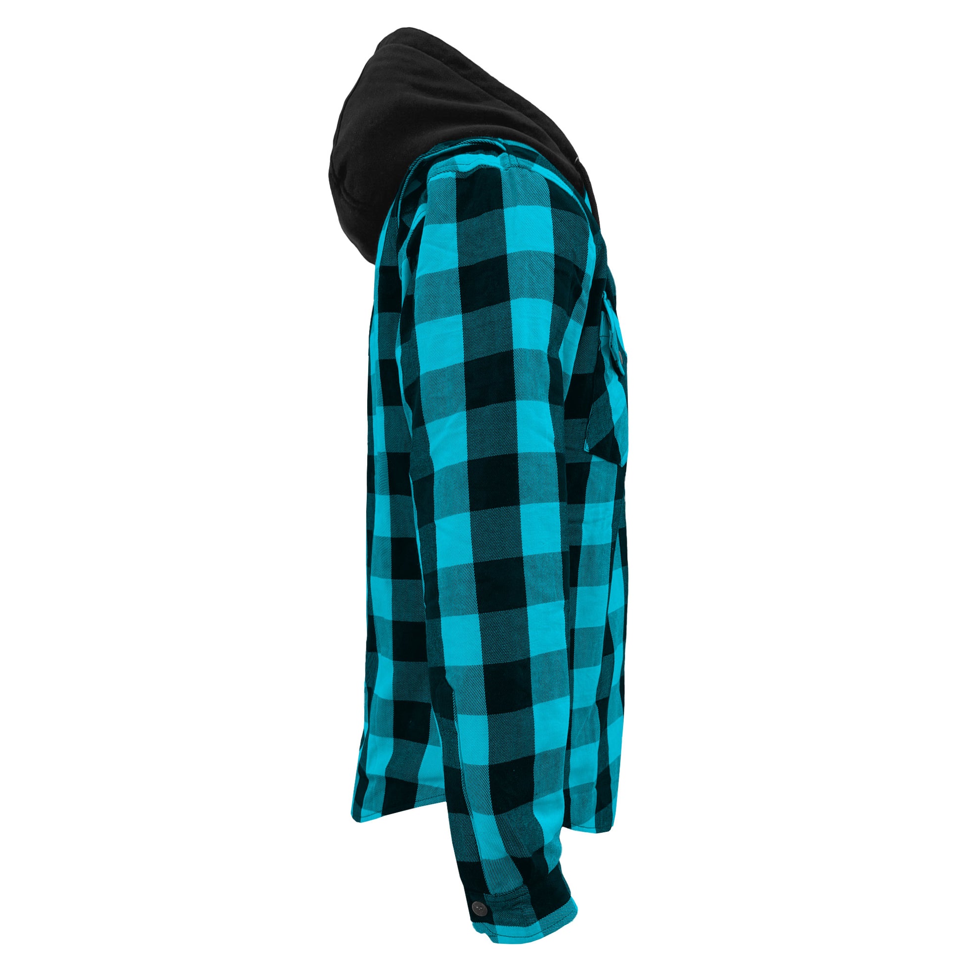 About Protective Flannel Hoodie For Men - Aqua Blue and Black Checkered with Pads
