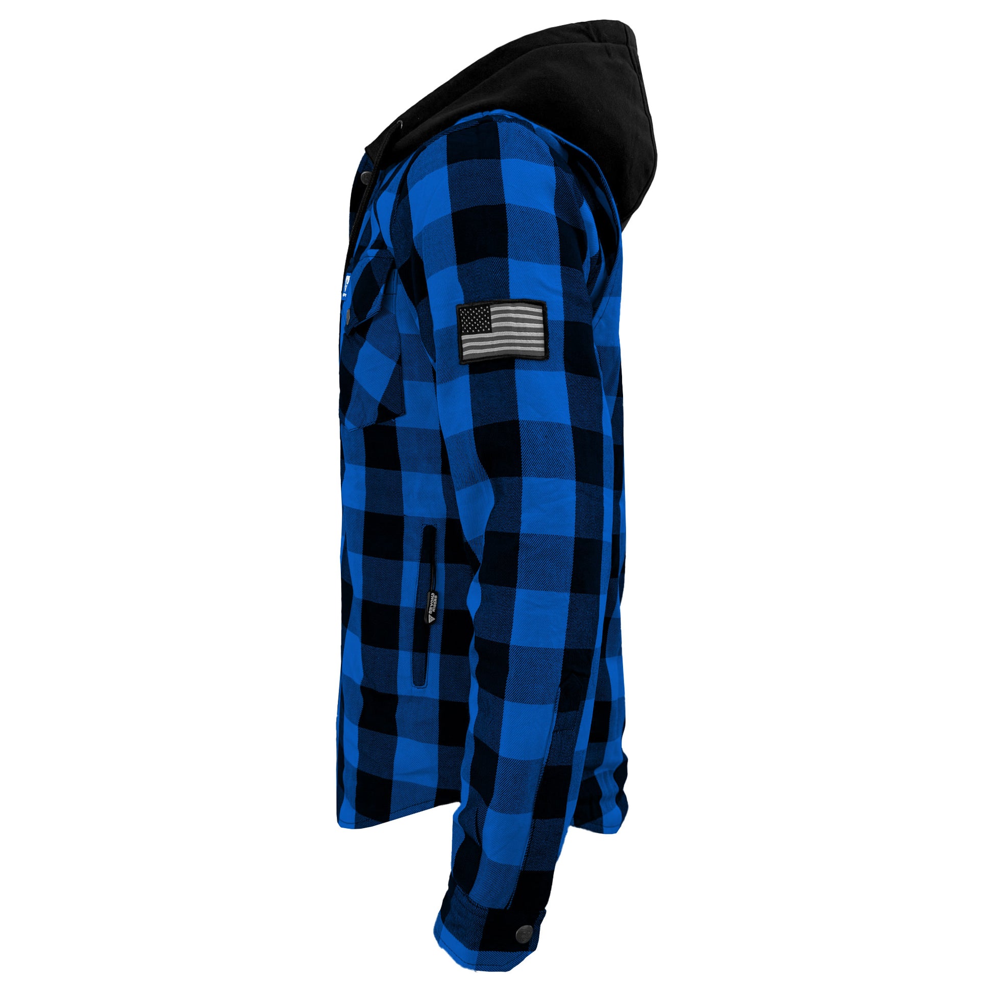 Protective Flannel Hoodie For Men - Blue and Black Checkered with Pads