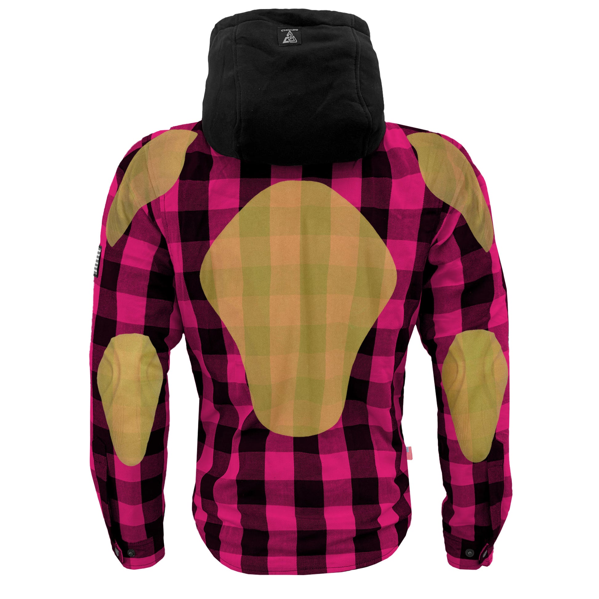 The Men's Pink& Black Checkered Protective Flannel Hoodie with Level 1 pads included is a standout piece in the Beyond Riders collection, offering a harmonious combination of striking design and substantial protection. This Flannel Hoodie is not just for motorcycle enthusiasts but is also ideal for the PEV rider who seeks protective clothing that complements an active, style-conscious lifestyle.