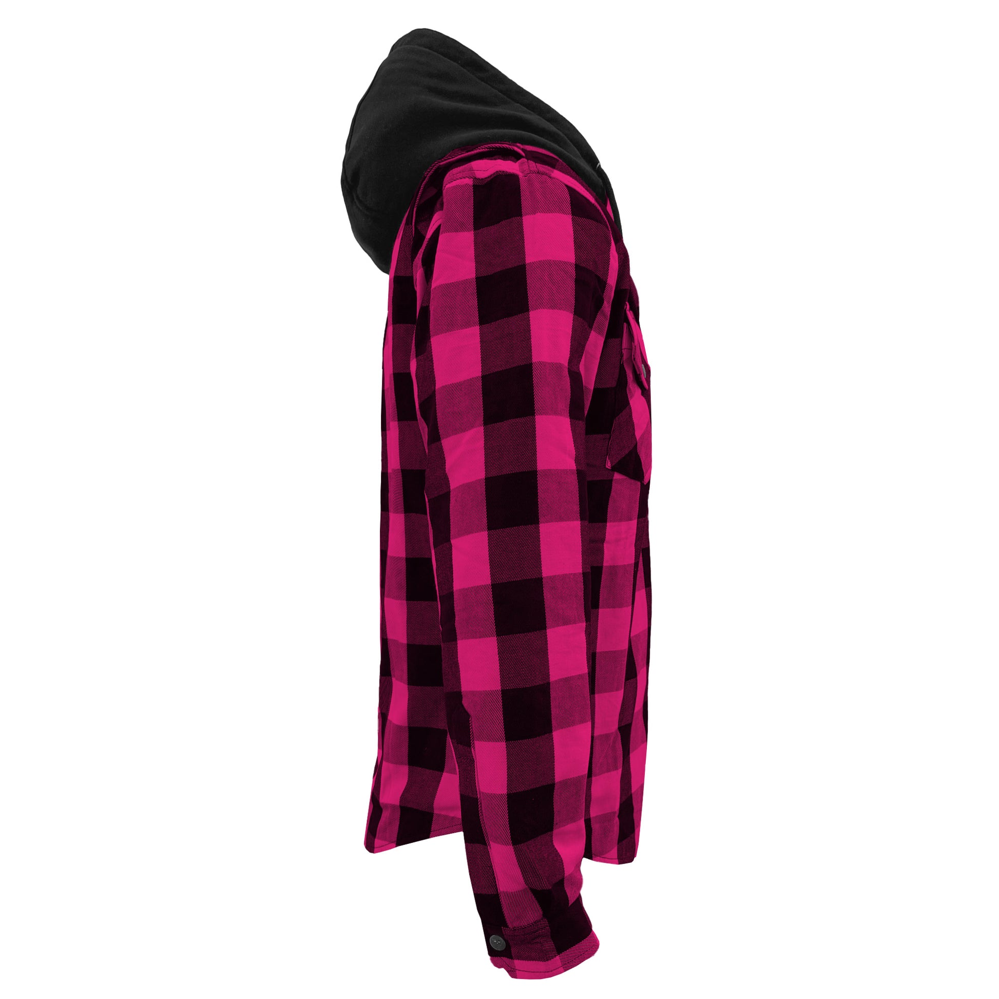 Find your perfect blend of style and safety with the Men's Protective Flannel Hoodie in Pink & Black Checkered & Black Fleece Hood with Level 1 pads included. This Beyond Riders' selection is for those who navigate life's journeys with a keen sense of style and a high regard for protection. Ideal for the motorcycle or PEV rider who values a look that’s as versatile as their lifestyle.