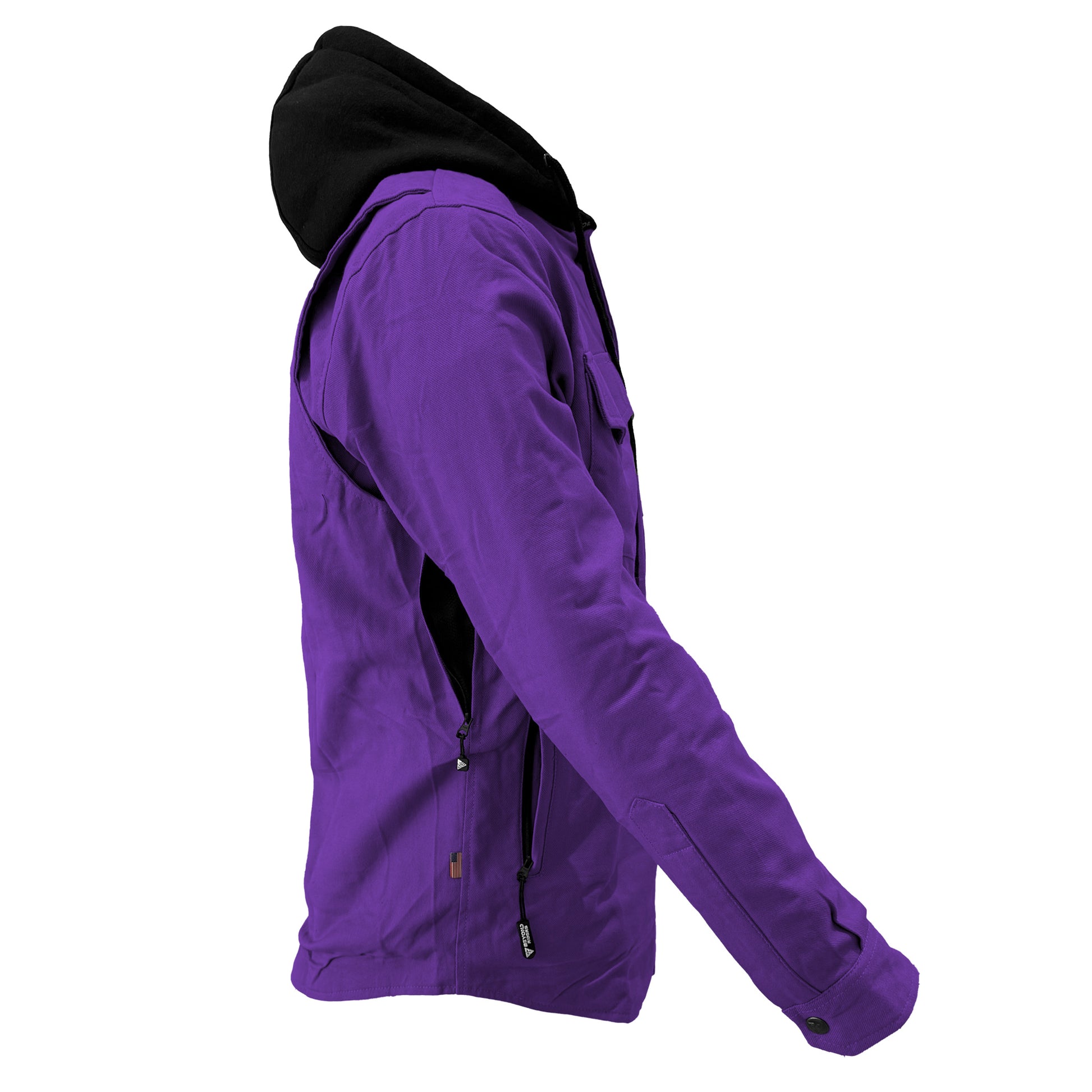 Find your perfect blend of style and safety with the Men's Protective Flannel Hoodie in Purple Solid & Black Fleece Hood with Level 1 pads included. This Beyond Riders' selection is for those who navigate life's journeys with a keen sense of style and a high regard for protection. Ideal for the motorcycle or PEV rider who values a look that’s as versatile as their lifestyle.