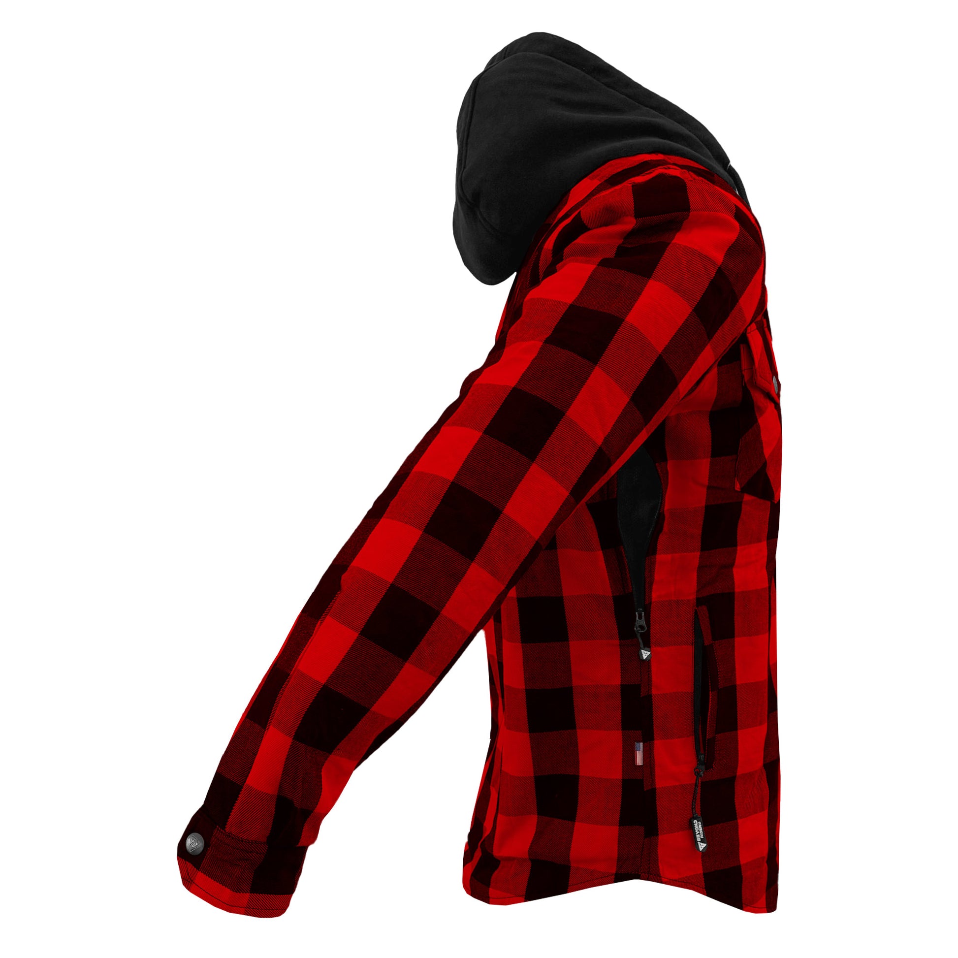 Protective Flannel Hoodie For Men - Red and Black Checkered with Pads