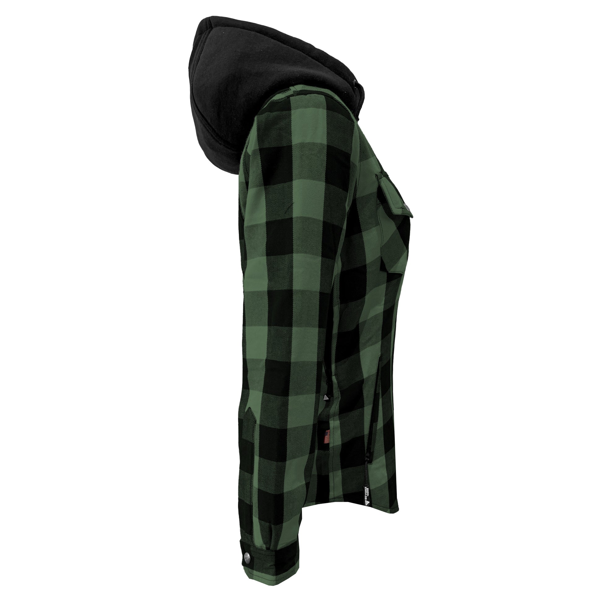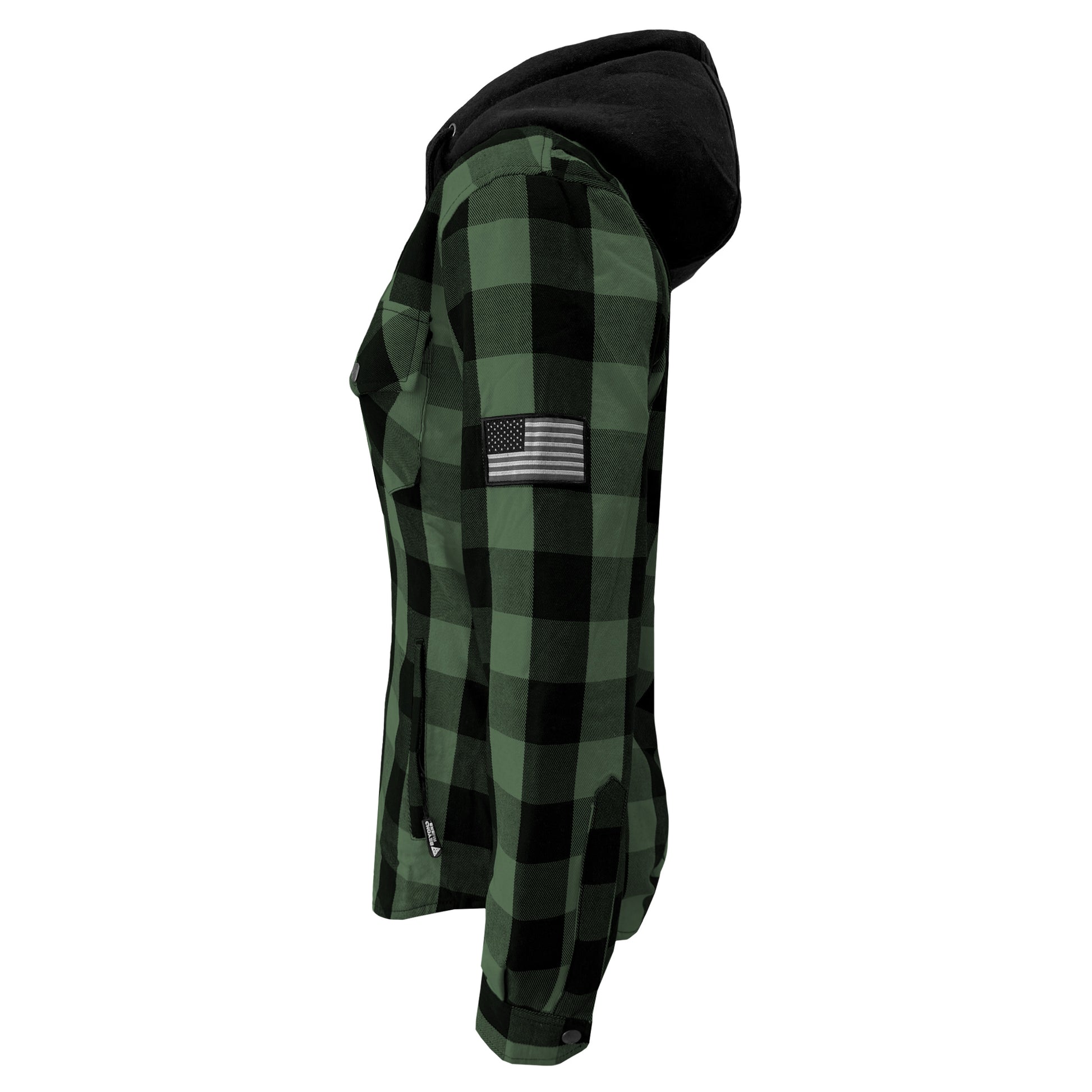 Protective Flannel Hoodie for Women - Dark Green and Black Checkered with Pads