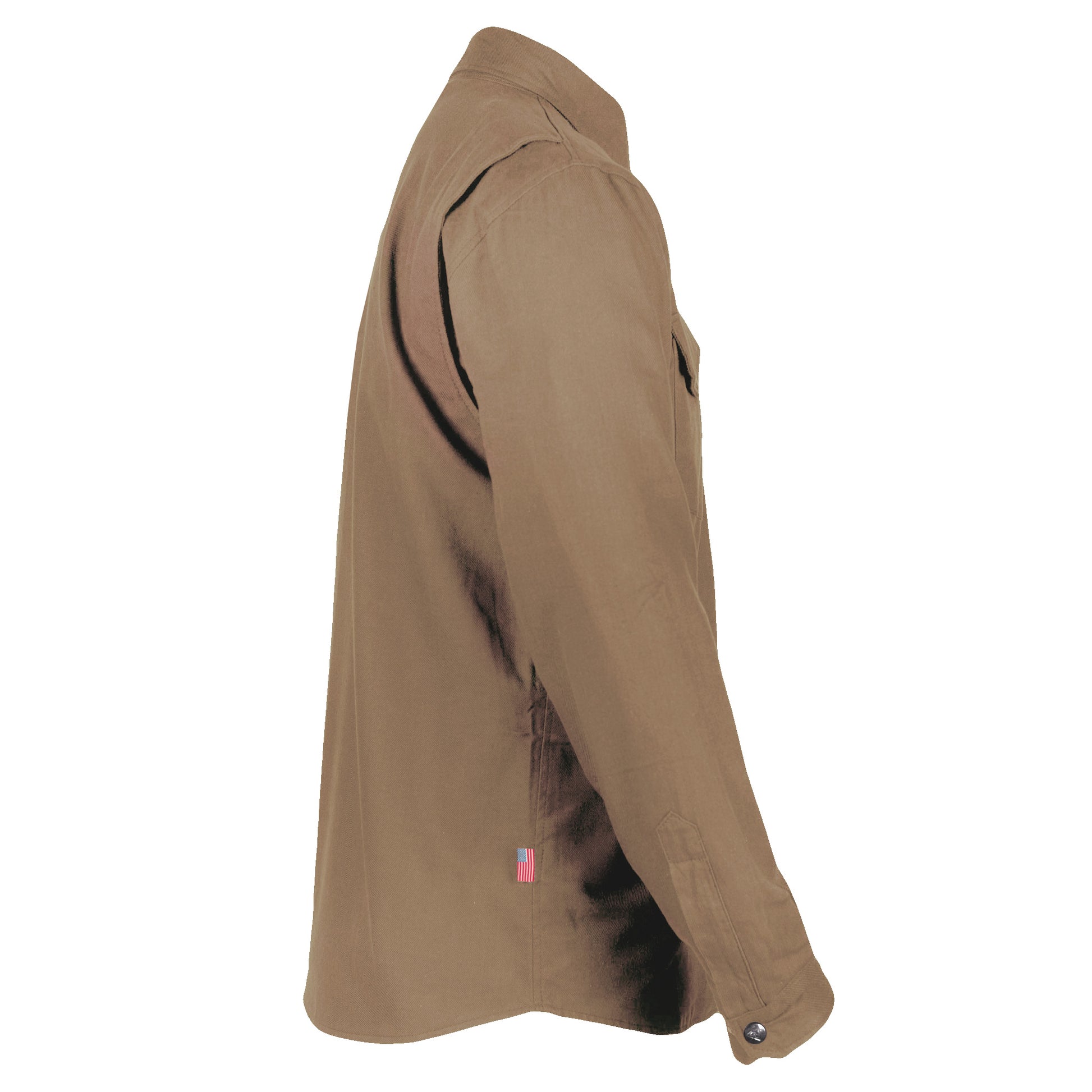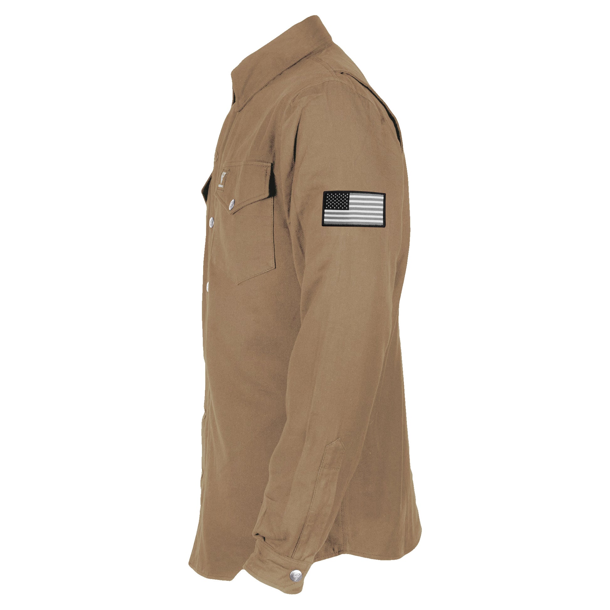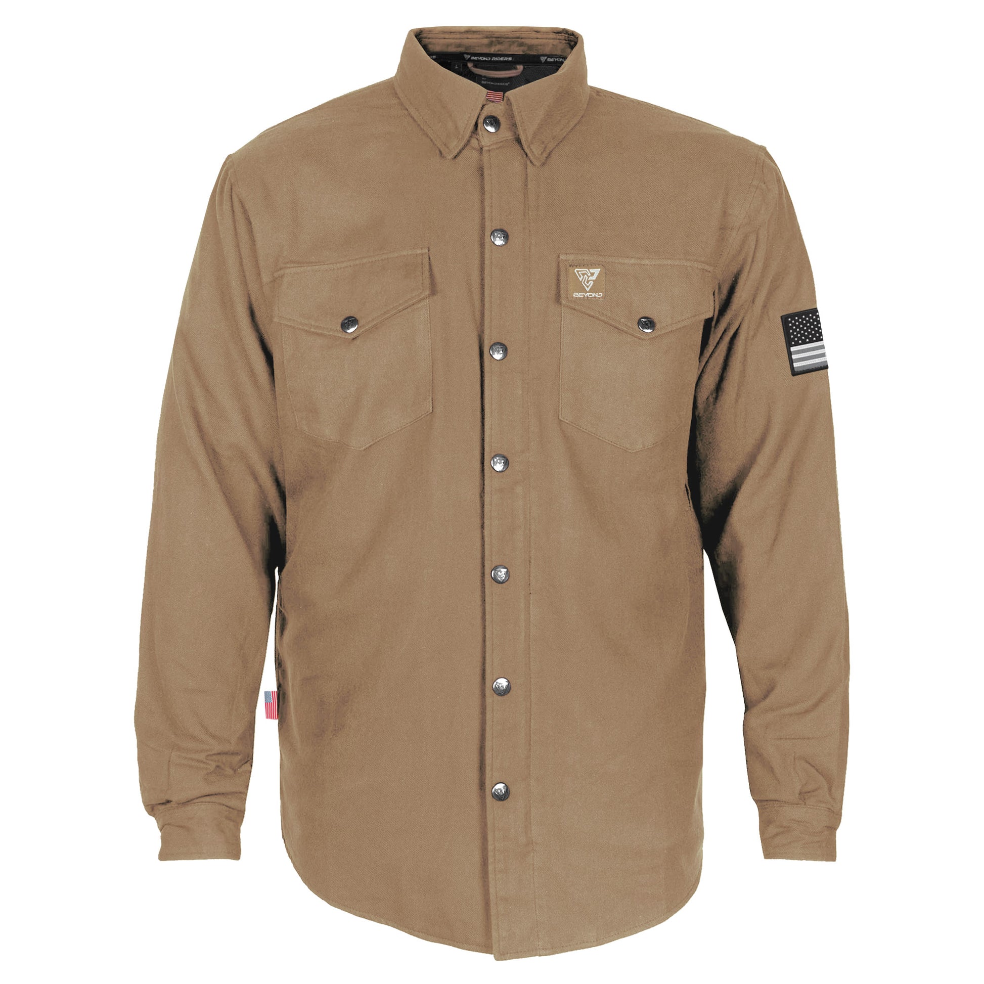 The Men's Camel Solid Protective Flannel Shirt with Level 1 pads included stands at the forefront of Beyond Riders' commitment to blending essential protection with undeniable style. It's the ideal motorcycle protective clothing for riders seeking a profound combination of deep hues and deep safety commitment.