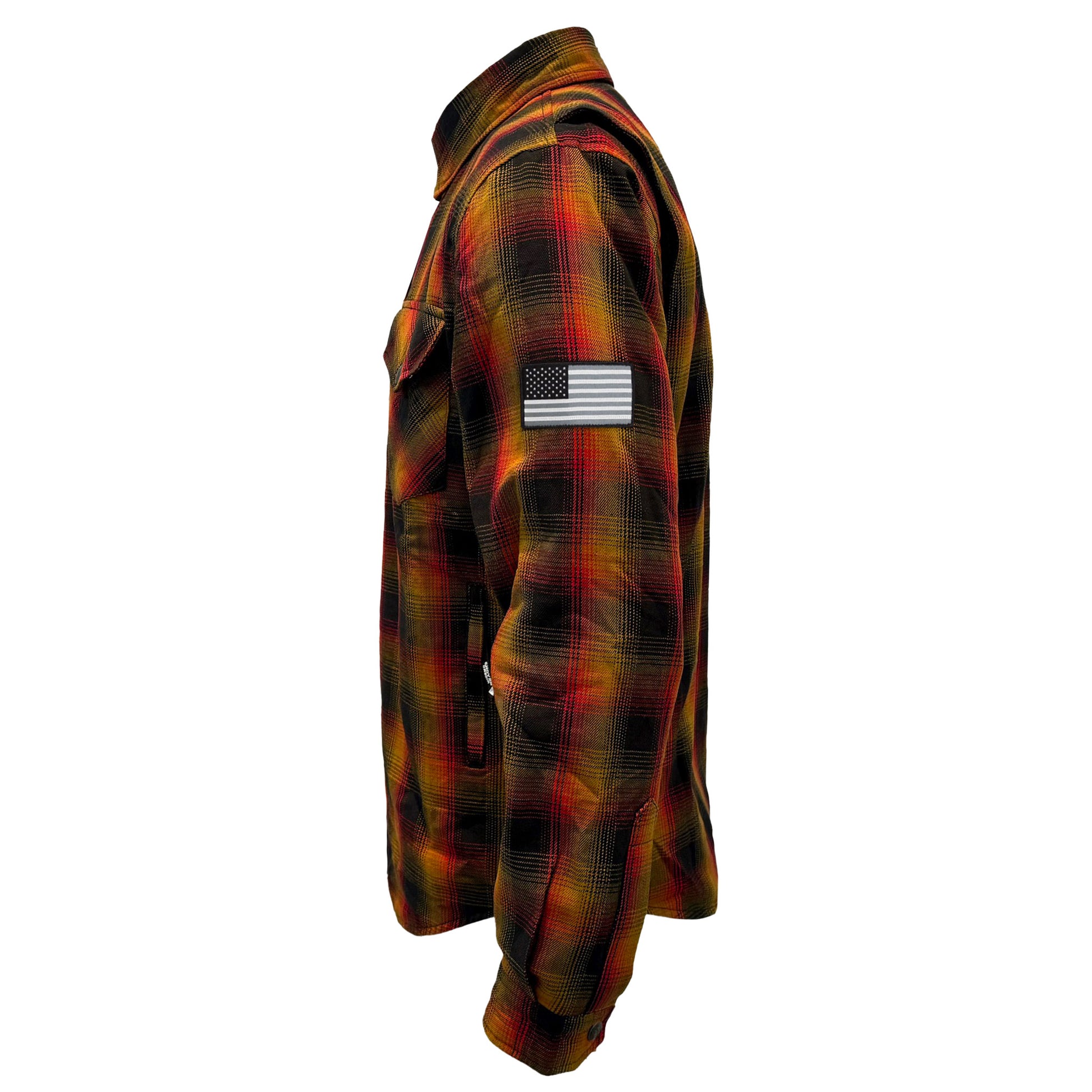 Protective Flannel Shirt For Men - Flame Orange Black Red Plaid with Pads