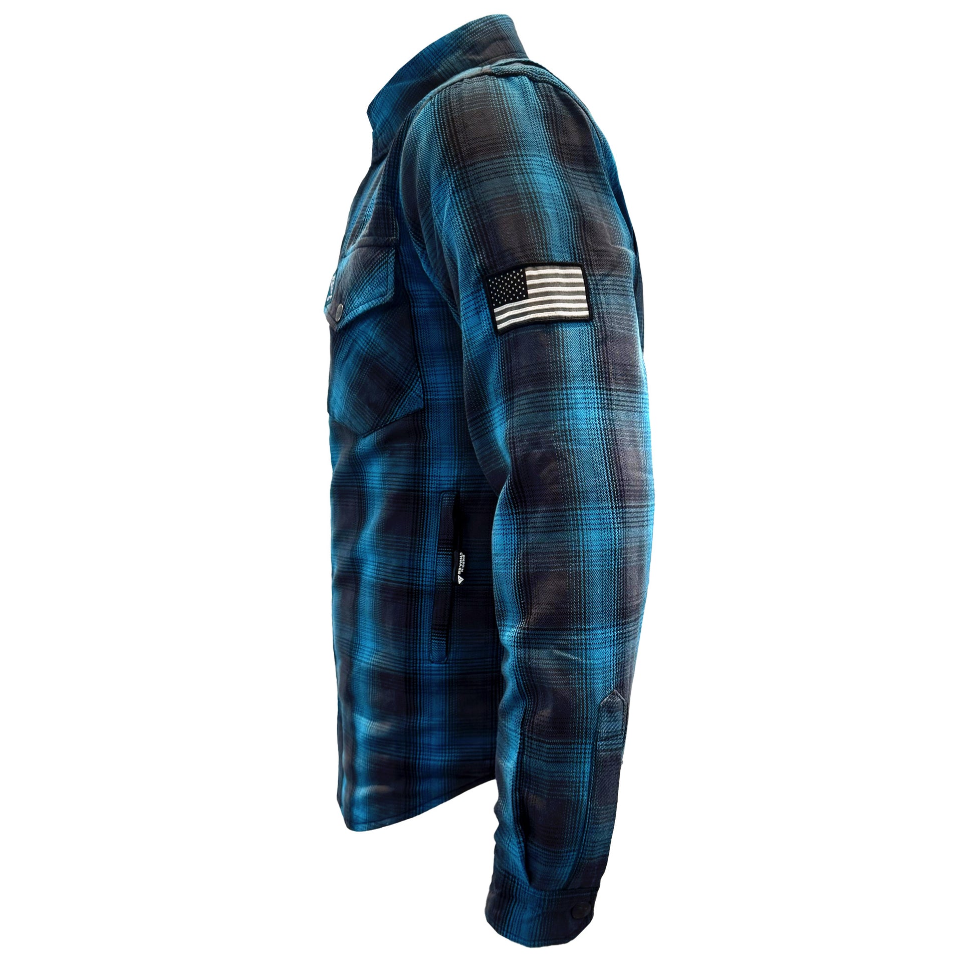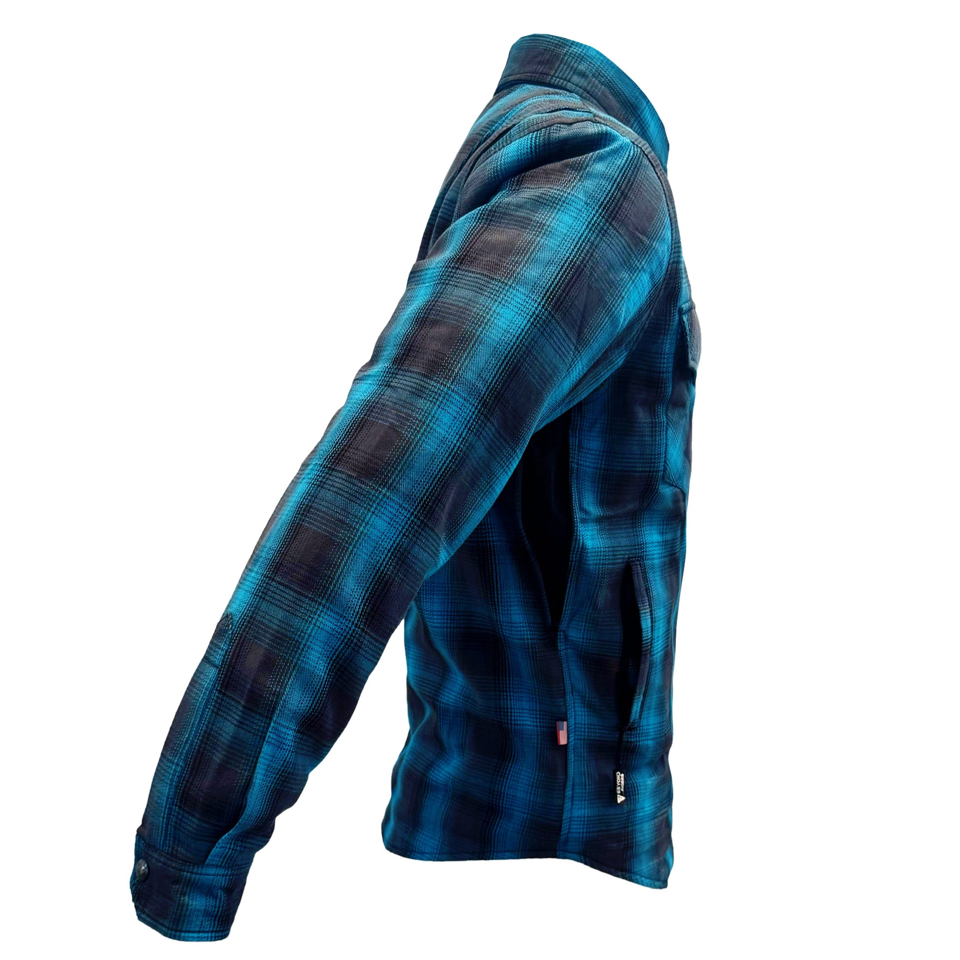 The Men's Grey & Aqua Blue Plaid Protective Flannel Shirt with Level 1 pads included is a standout piece in the Beyond Riders collection, offering a harmonious combination of striking design and substantial protection. This shirt is not just for motorcycle enthusiasts but is also ideal for the PEV rider who seeks protective clothing that complements an active, style-conscious lifestyle.
