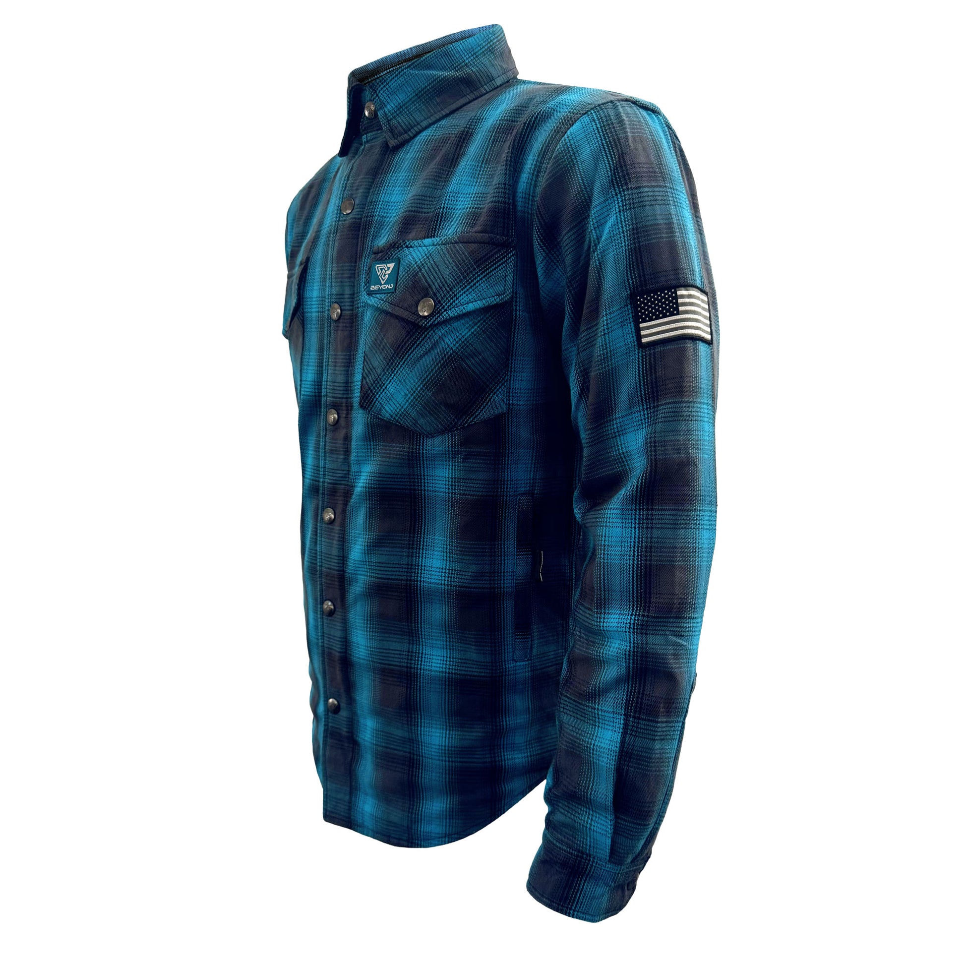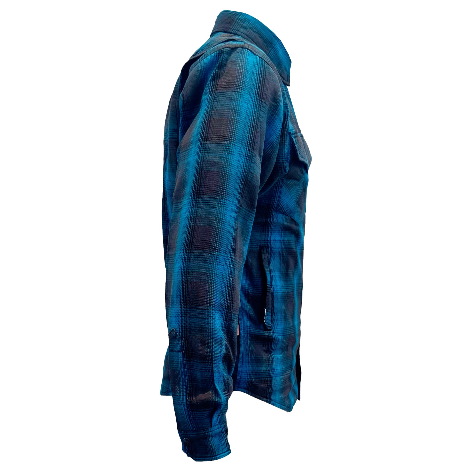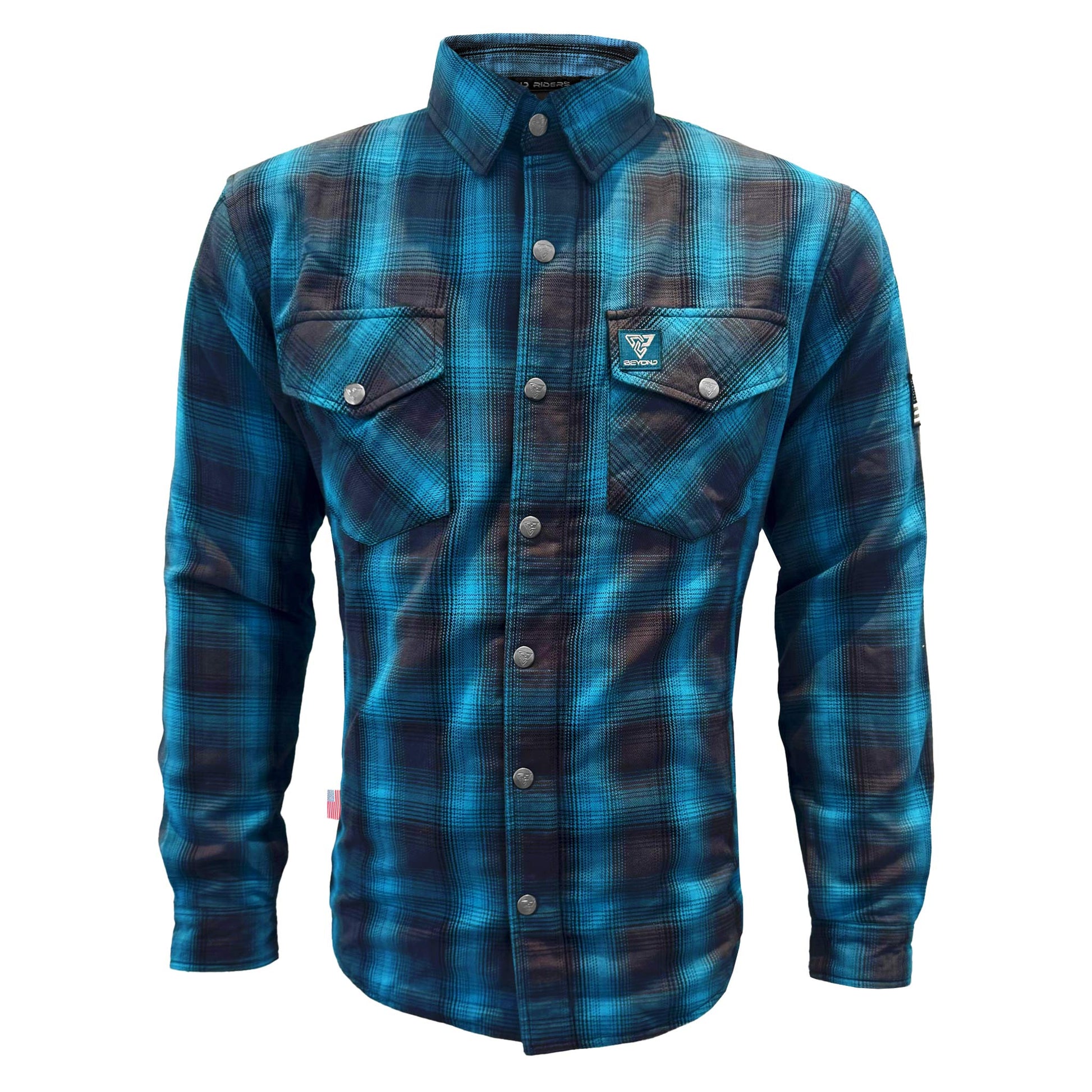 Find your perfect blend of style and safety with the Men's Protective Flannel Shirt in Grey & Aqua Blue Plaid with Level 1 pads included. This Beyond Riders' selection is for those who navigate life's journeys with a keen sense of style and a high regard for protection. Ideal for the motorcycle or PEV rider who values a look that’s as versatile as their lifestyle.