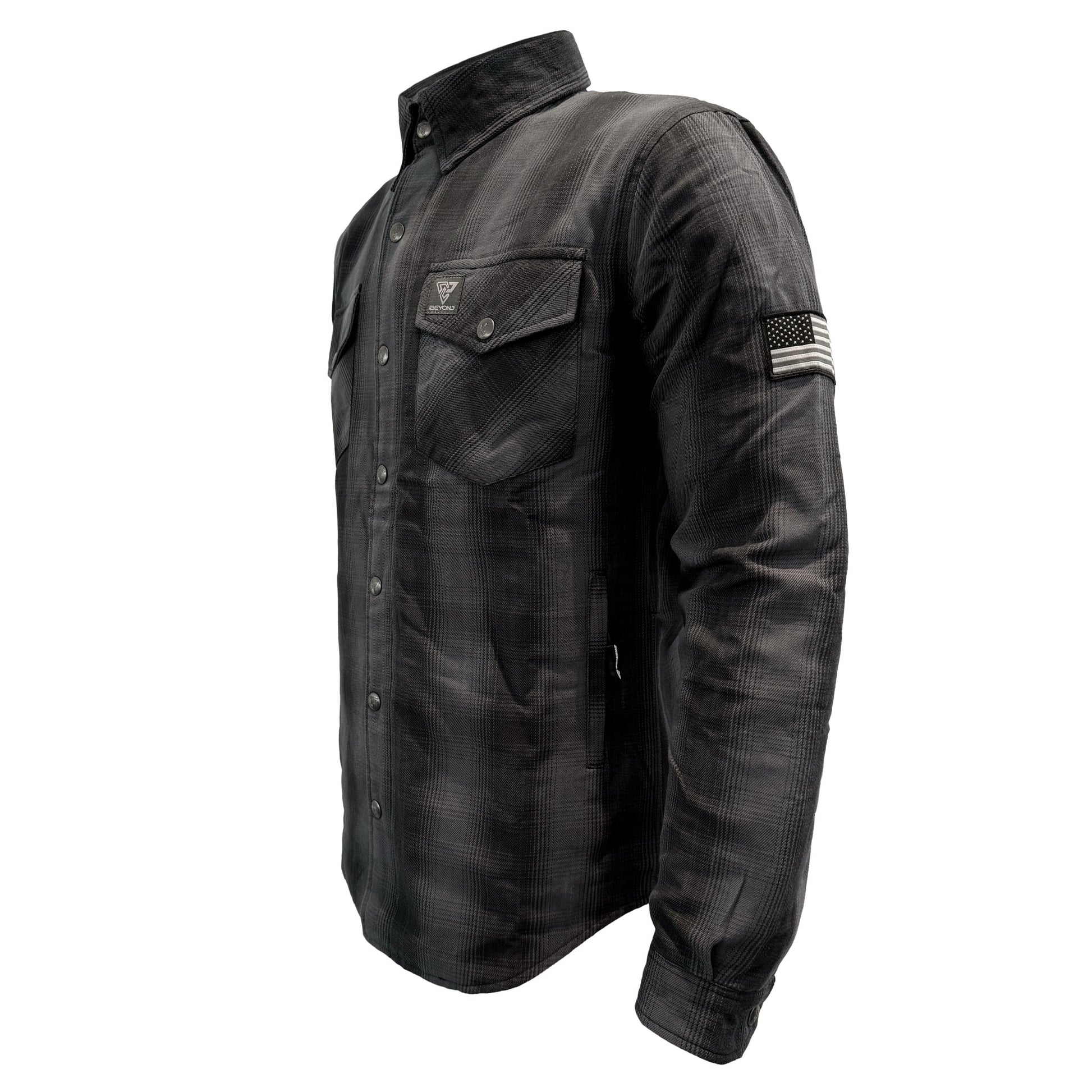 Find your perfect blend of style and safety with the Men's Protective Flannel Shirt in Grey & Black Plaid with Level 1 pads included. This Beyond Riders' selection is for those who navigate life's journeys with a keen sense of style and a high regard for protection. Ideal for the motorcycle or PEV rider who values a look that’s as versatile as their lifestyle.