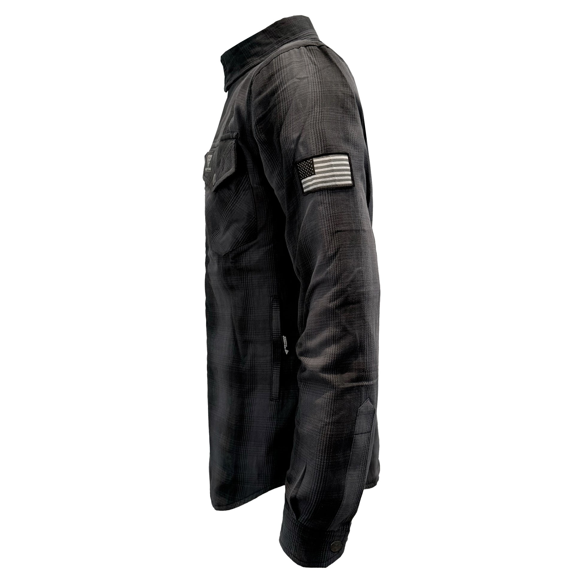 Protective Flannel Shirt For Men - Grey and Black Plaid with Pads