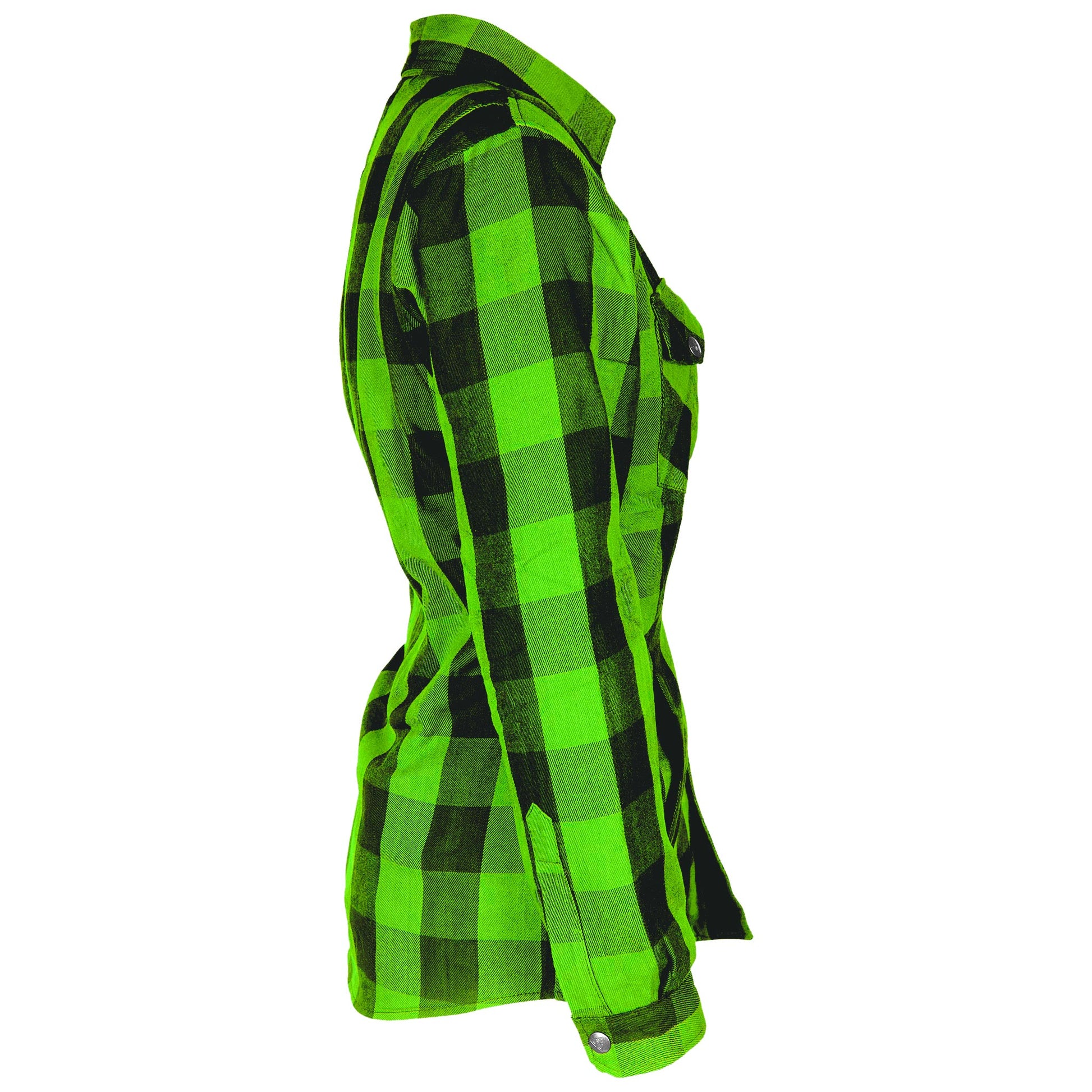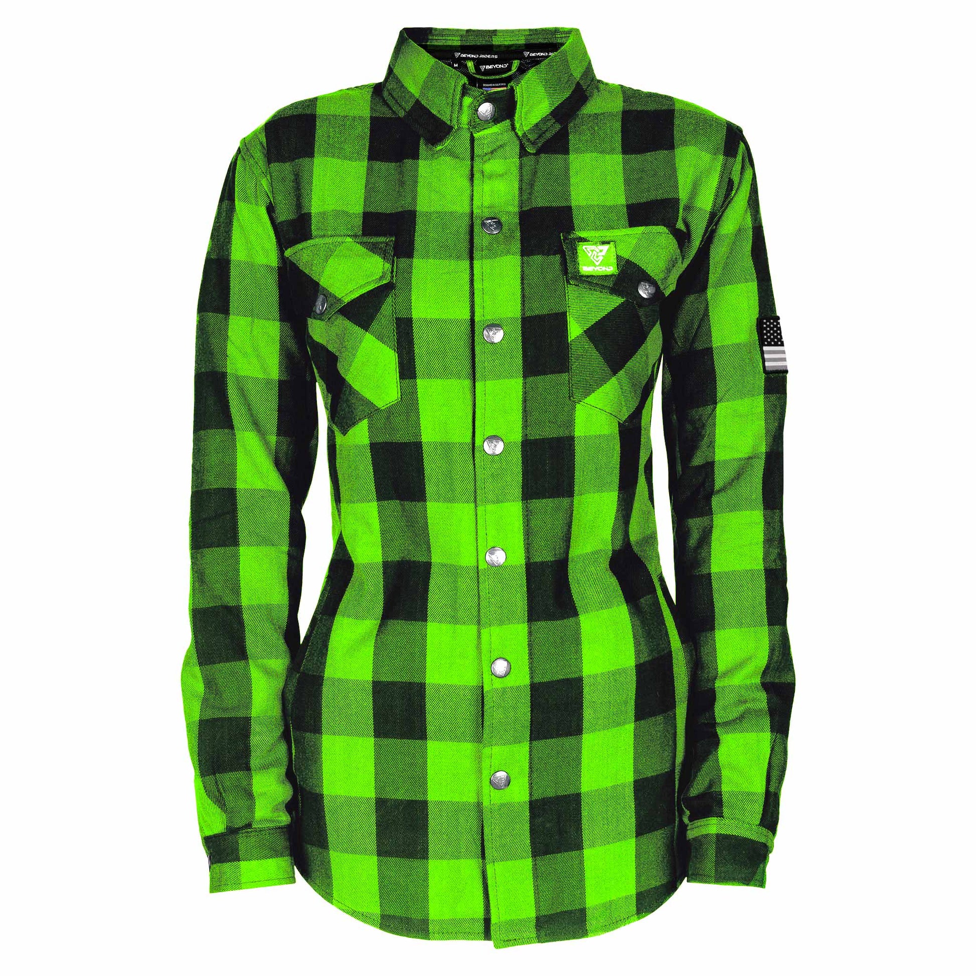 Meet the Women's Protective Flannel Shirt Green Checkered with Level 1 pads included, a stunning piece from Beyond Riders that brings a breath of fresh air to protective gear. Designed for the discerning rider, this shirt is essential for those who demand robust protection and refuse to blend into the background, whether on a motorcycle or a PEV.