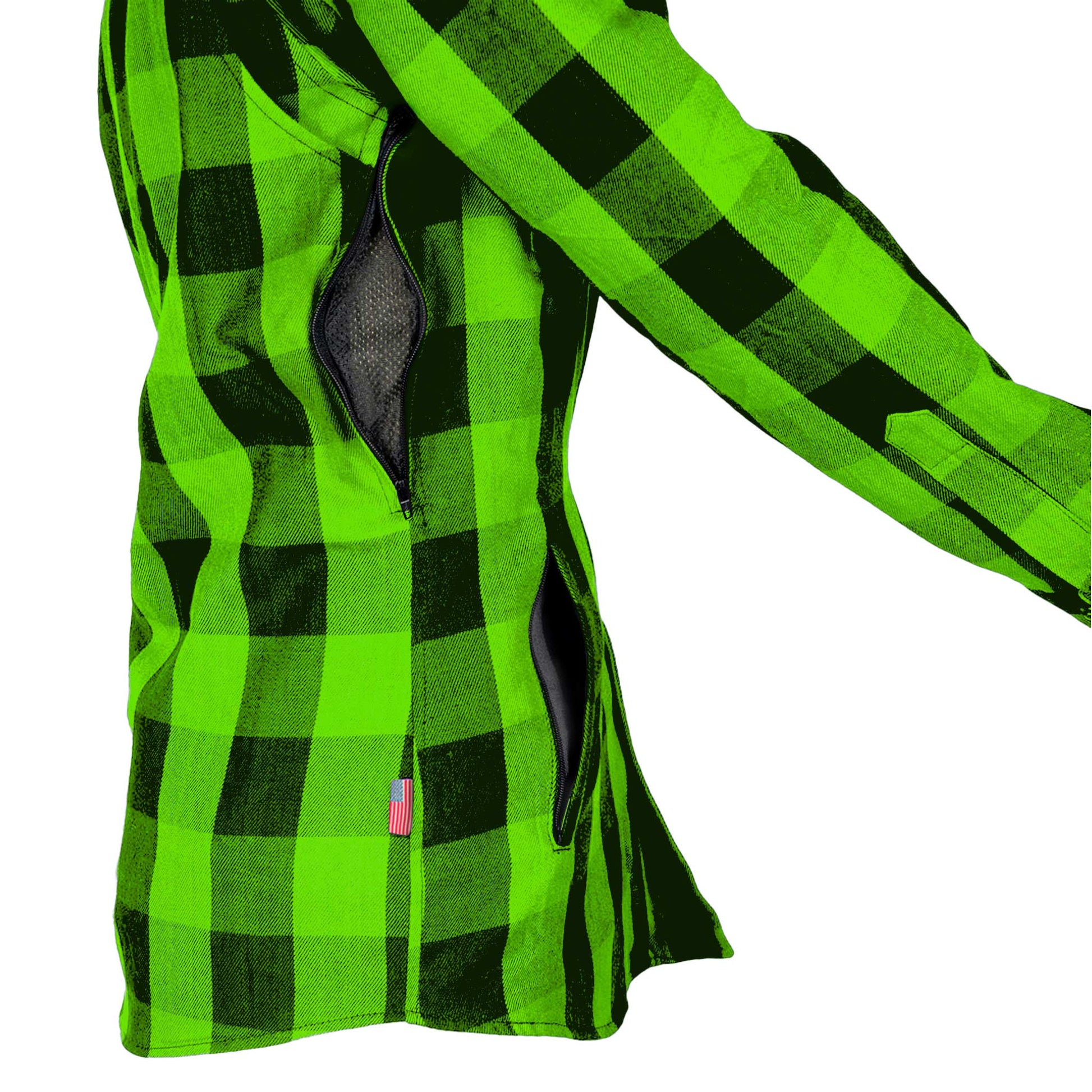 Protective Flannel Shirt for Women - Green Checkered with Pads