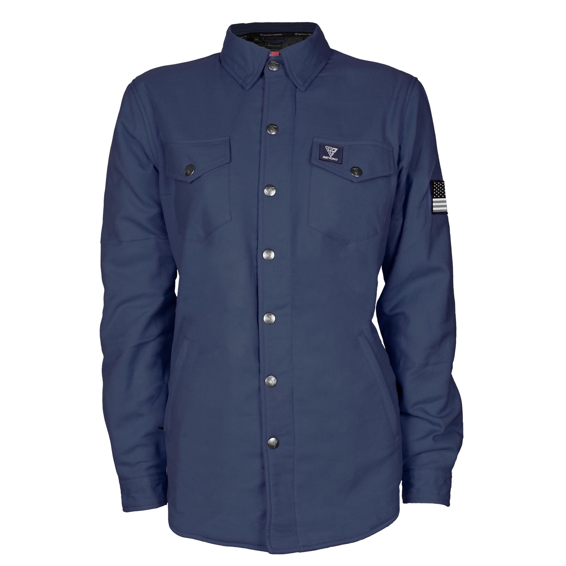 Discover the elegance of the Women's Protective Flannel Shirt in Navy Blue Solid with Level 1 pads included, presented by Beyond Riders — a perfect combination of chic design and superior rider protection. This premium shirt is crafted for the fashion-forward rider, striking an impeccable balance between classic navy blue charm and the necessity of high-level safety for motorcycle and PEV enthusiasts.