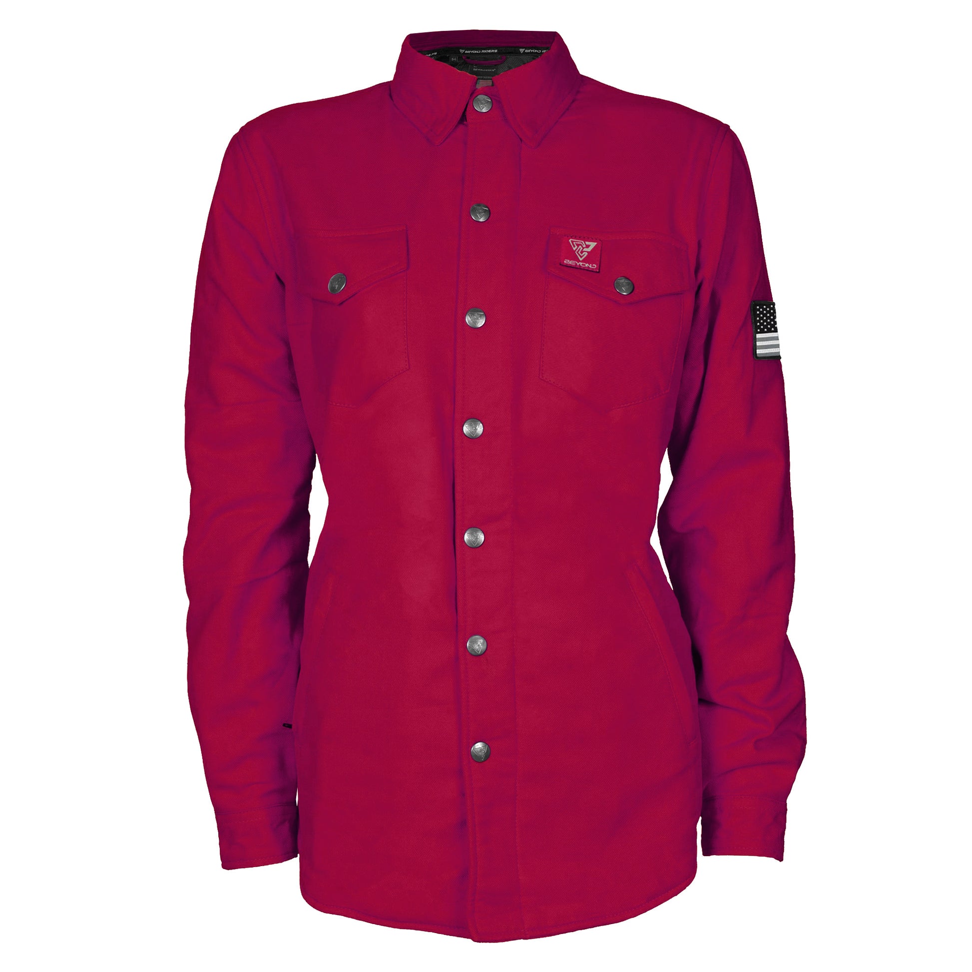 Step into a realm of subtle sophistication with the Women's Protective Flannel Shirt in Red Maroon Solid with Level 1 pads included from Beyond Riders. Tailored for discerning riders who value minimalist style without compromising on safety, this protective shirt is an essential piece for those who take to the streets on Motorcycles PEVs.
