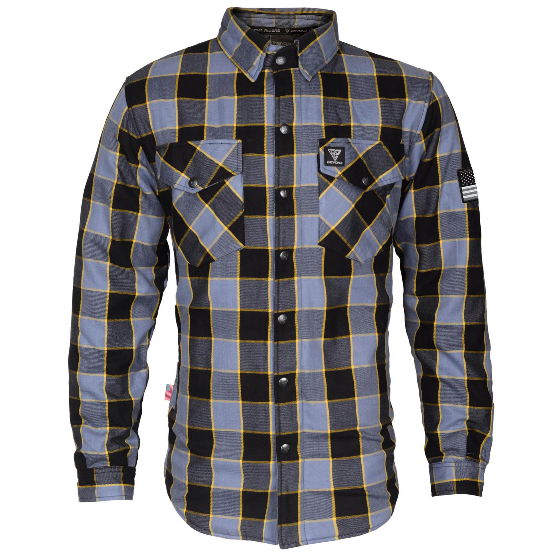 About Protective Flannel Shirt - Grey Checkered and Yellow Stripes with Pads