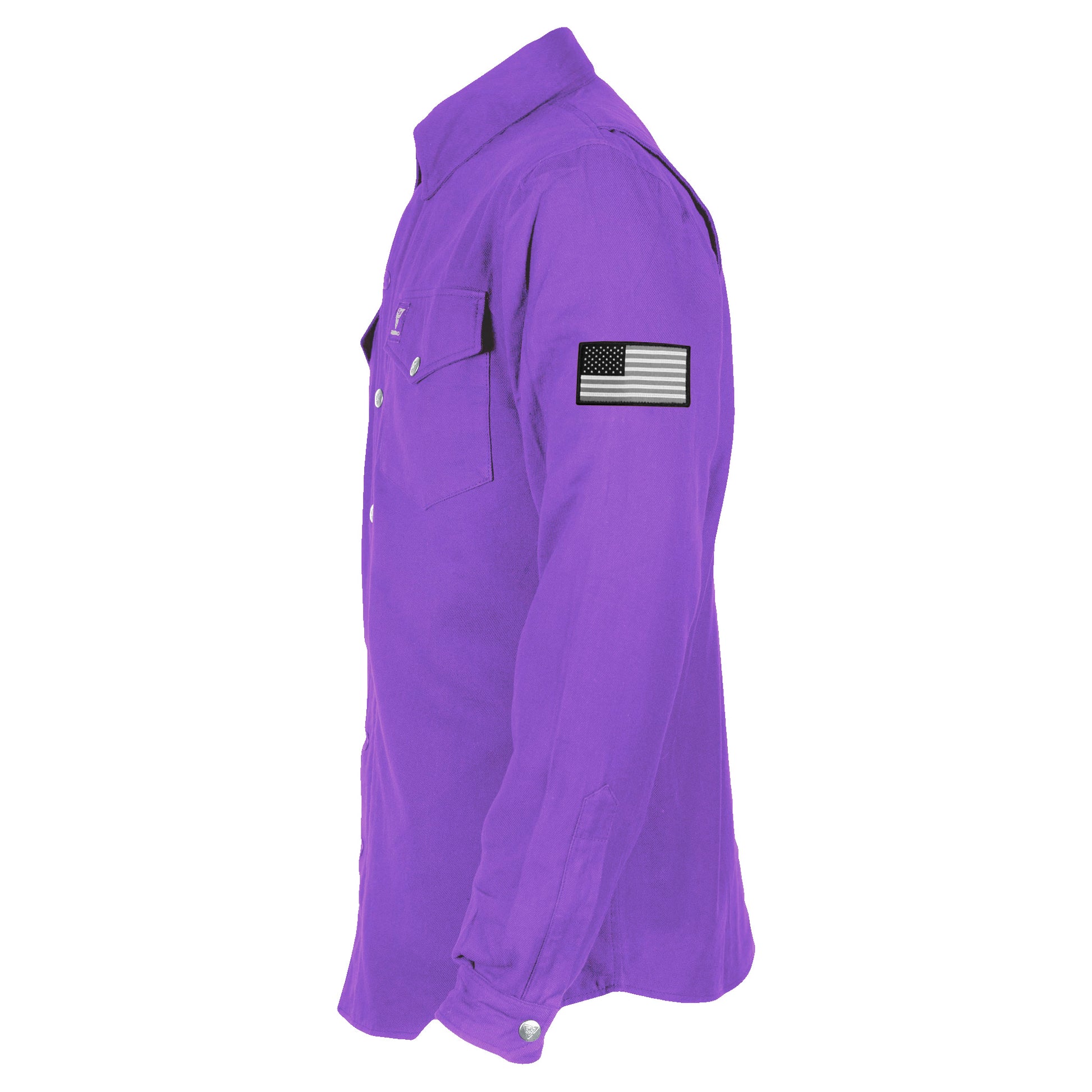 The Men's Protective Flannel Shirt in Purple Solid with Level 1 pads included from Beyond Riders is a tribute to those who prefer their protective wear to be as deep and mysterious as the night sky. Designed for the rider who commands presence and insists on safety, this shirt is the perfect amalgamation of style and protective function, suitable for both motorcycle and PEV riders who never compromise.