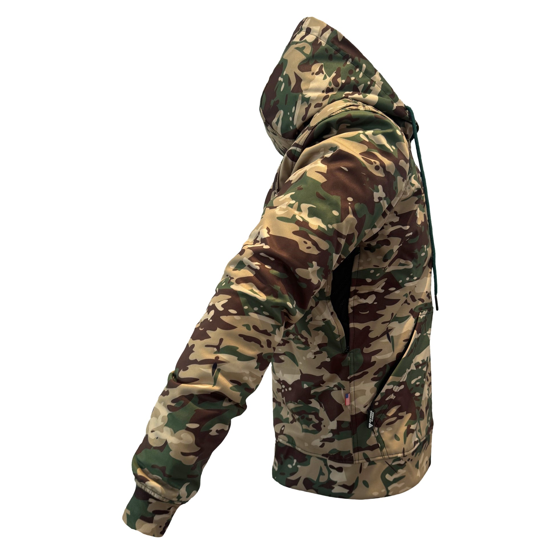 Introducing our latest innovation for the winter season: the Protective SoftShell Hoodie Camouflage with Level 1 Pads included. This unisex hoodie is designed for riders who seek both style and substantial protection against cold and wet conditions.