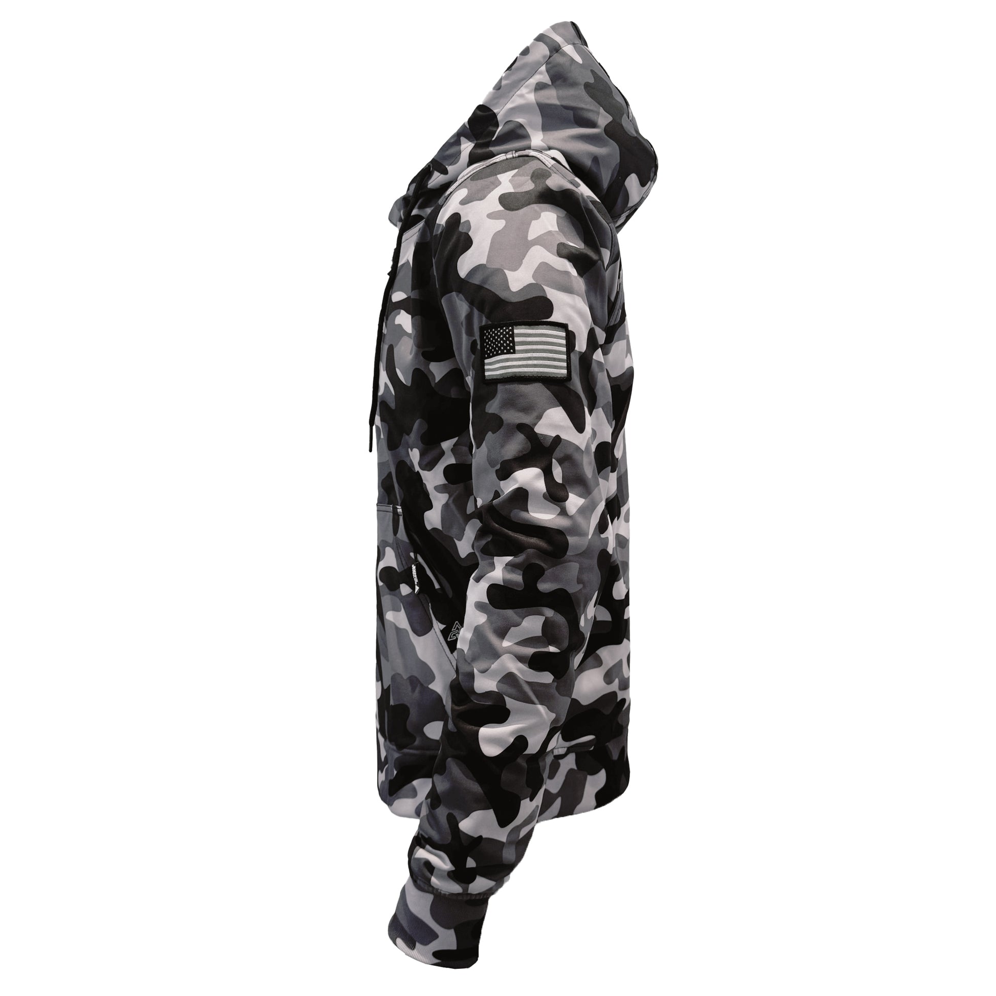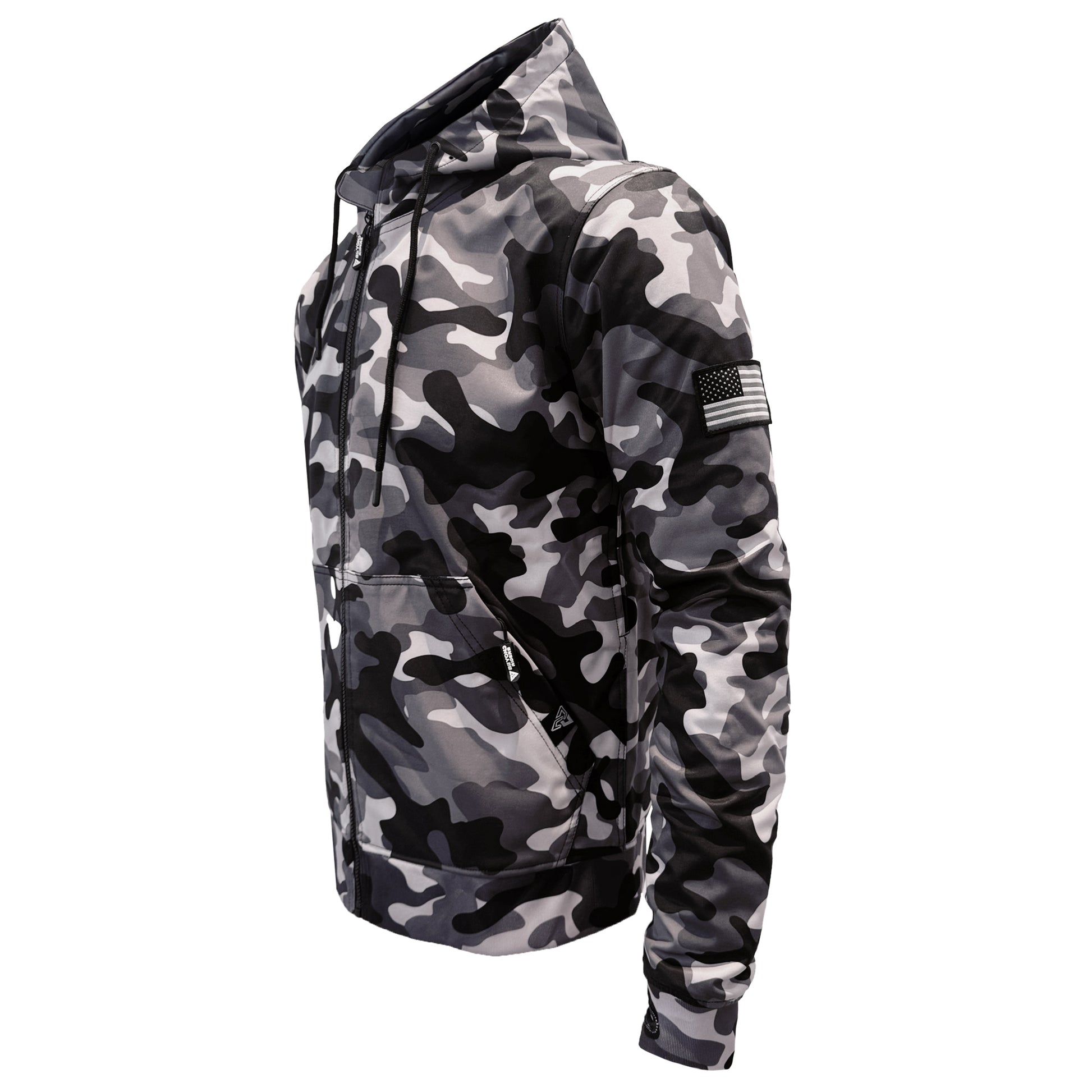 About Protective SoftShell Unisex Camouflage Hoodie - "Grey Boomer" with Pads