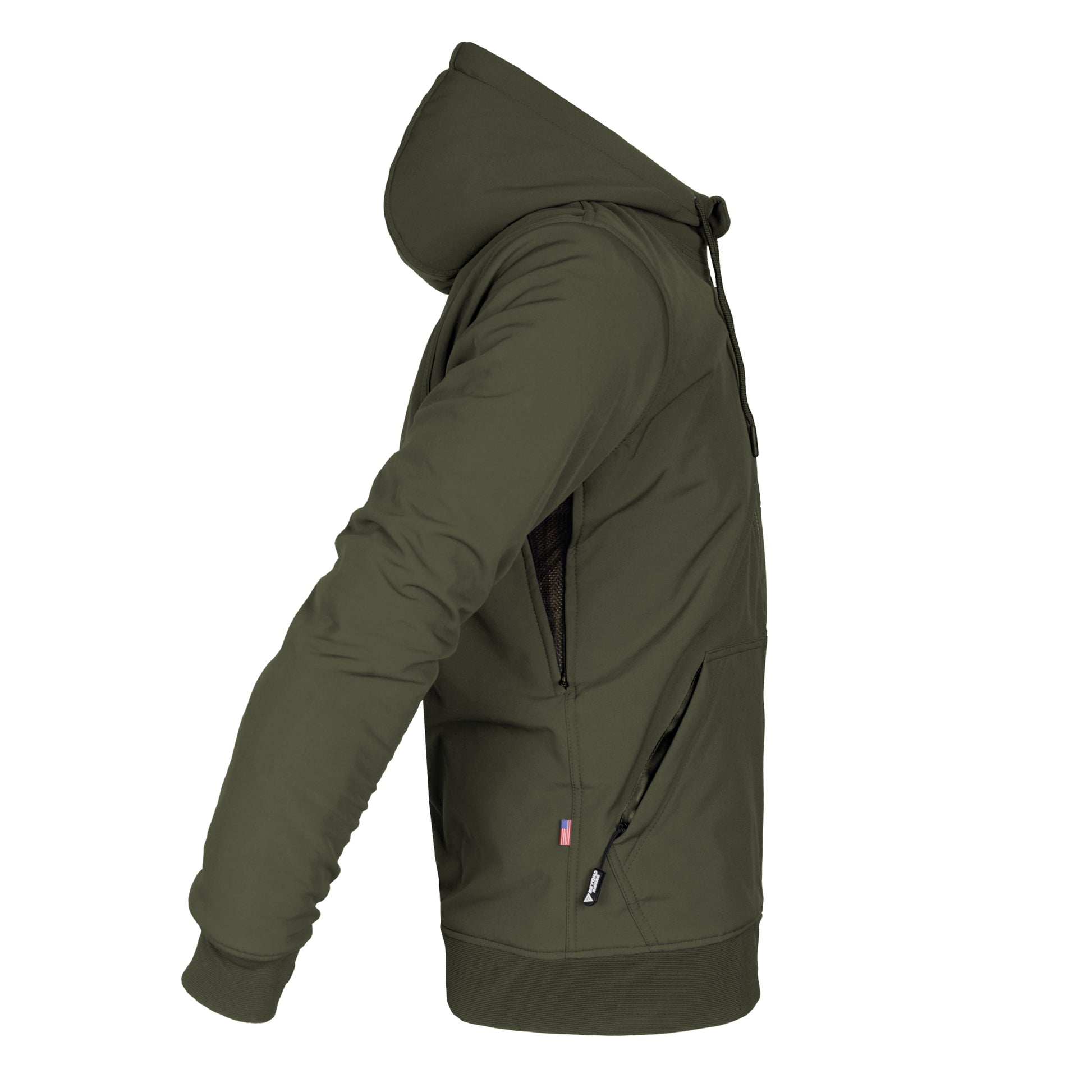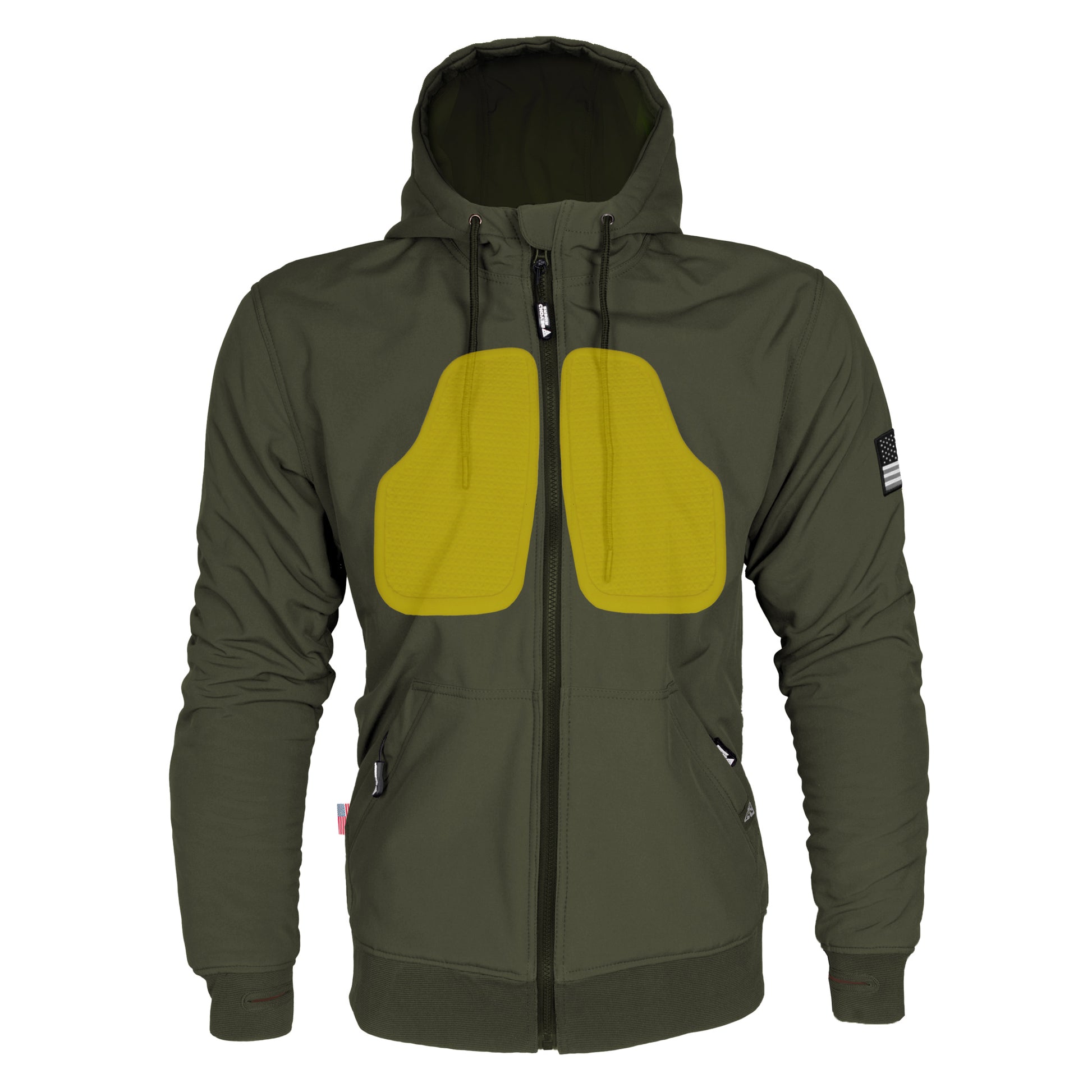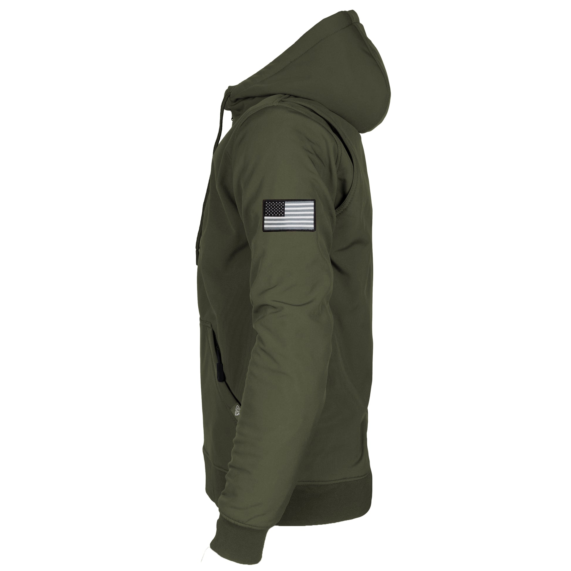 About Protective SoftShell Unisex Hoodie - Army Green Matte with Pads