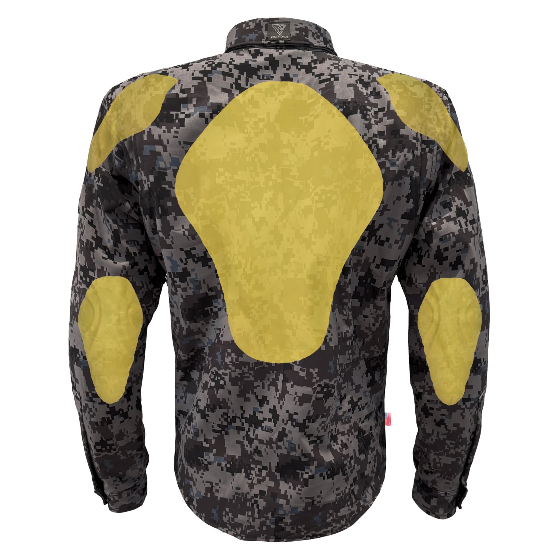 The Protective SoftShell Jacket - Camouflage Devil Six with Level 1 pads included from Beyond Riders is your go-to winter riding gear. Combining wind and water resistance with full Aramid fiber lining for protection, it's essential for any rider facing the winter elements. Order yours today and experience the perfect fusion of protection, style, and comfort.