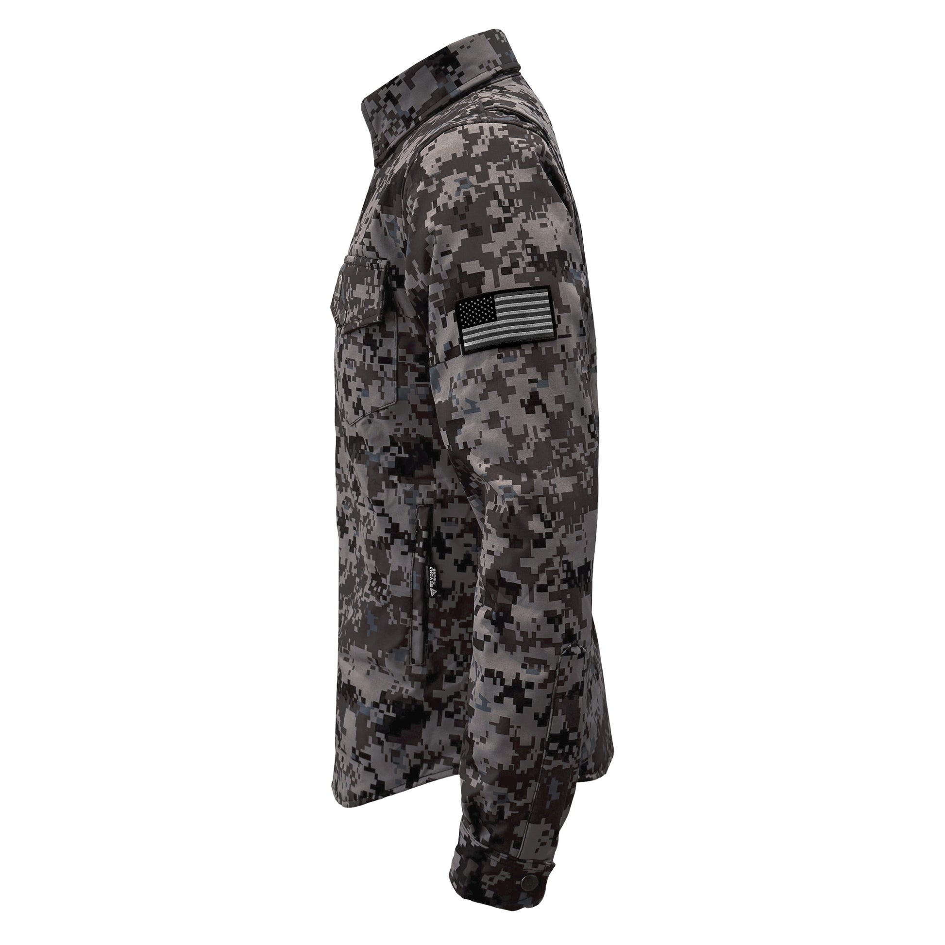 Protective SoftShell Winter Jacket for Men - Camouflage Devil Six with Pads