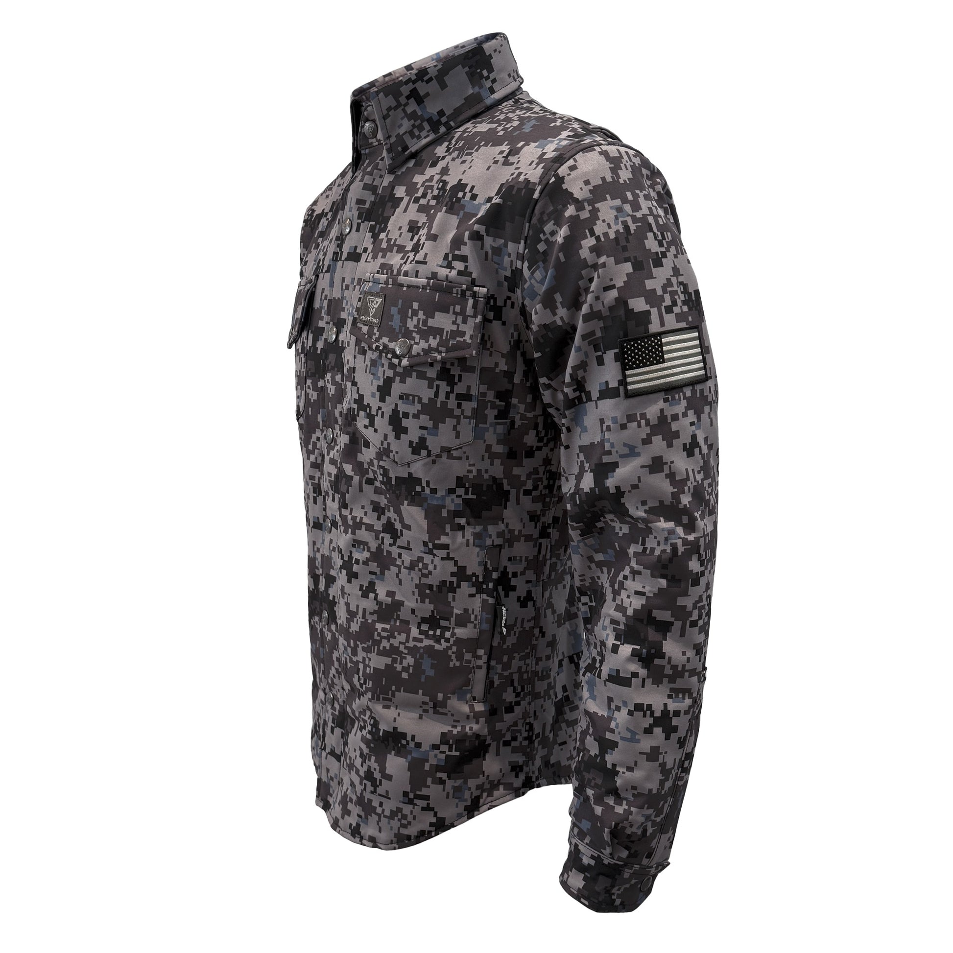 Experience the ultimate blend of style, warmth, and safety with the Protective SoftShell Jacket - Camouflage Devil Six with Level 1 pads included, a stellar addition to our Men's Winter Collection. Perfect for riders who brave the chill, this jacket offers unparalleled functionality in a sleek design.