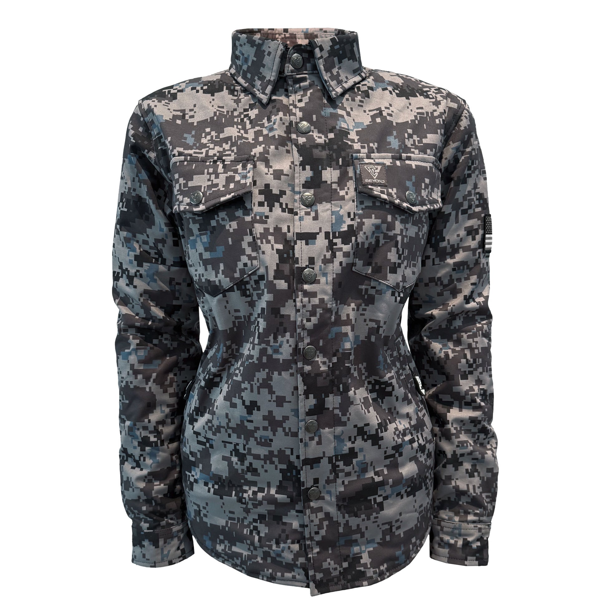 Experience the ultimate blend of style, warmth, and safety with the Protective SoftShell Jacket - Camouflage Devil Six with Level 1 pads included, a stellar addition to our Women's Winter Collection. Perfect for riders who brave the chill, this jacket offers unparalleled functionality in a sleek design.