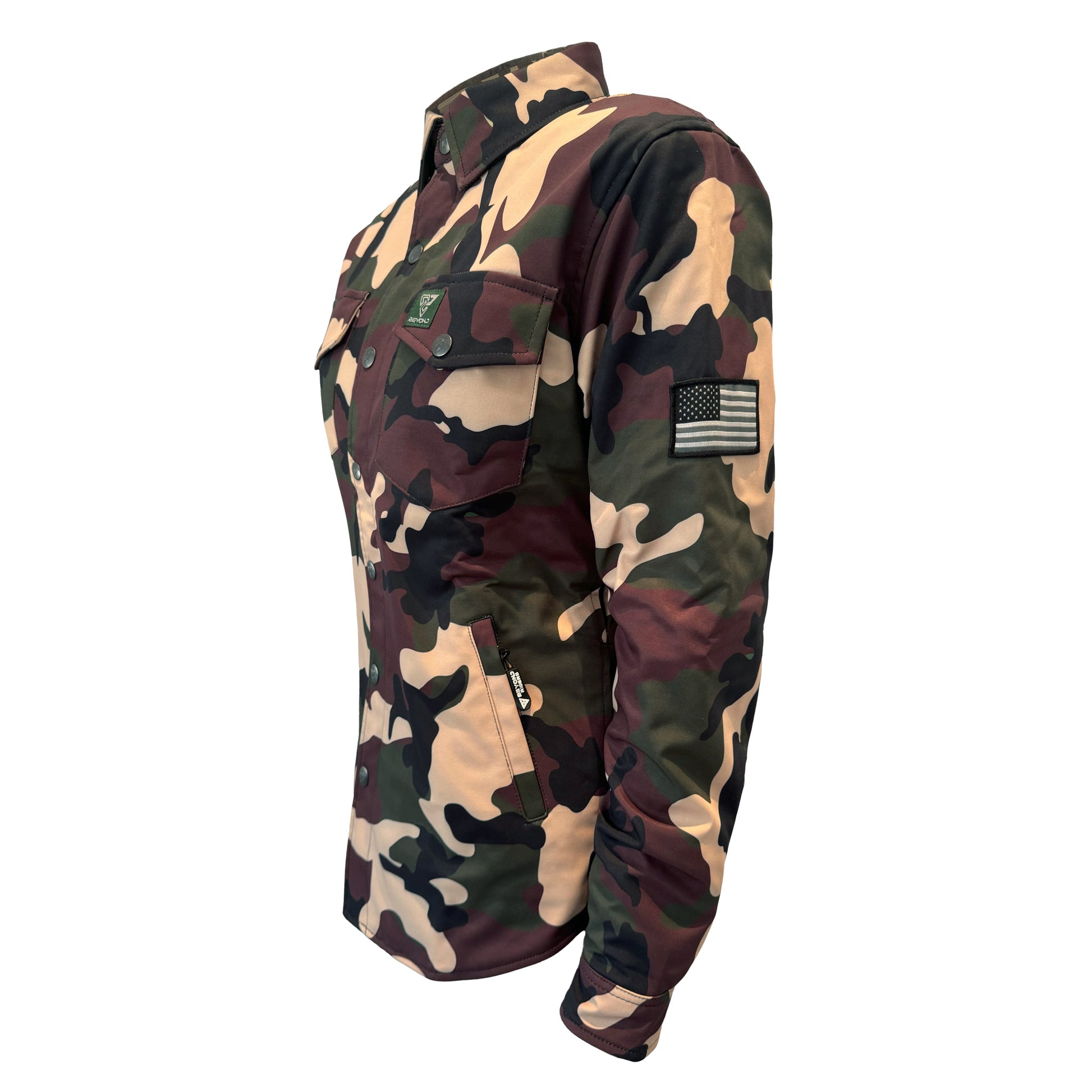 The Protective SoftShell Jacket - Camouflage Knight Hawk with Level 1 pads included from Beyond Riders is your go-to winter riding gear. Combining wind and water resistance with full Aramid fiber lining for protection, it's essential for any rider facing the winter elements. Order yours today and experience the perfect fusion of protection, style, and comfort.
