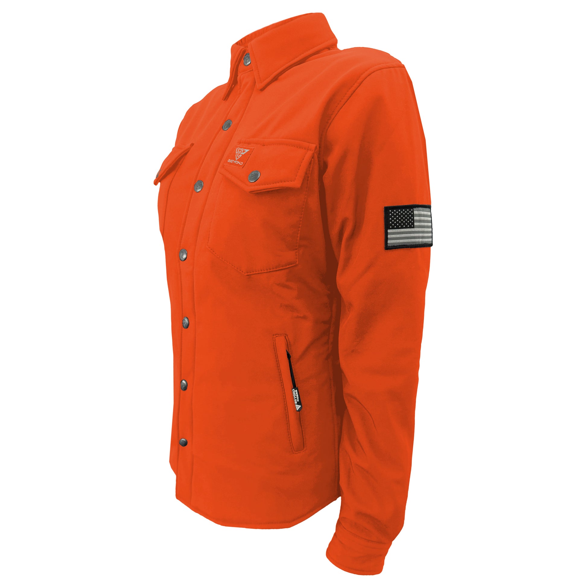The Protective SoftShell Winter Jacket for Women - Orange Matte with Level 1 pads included from Beyond Riders is your go-to winter riding gear. Combining wind and water resistance with full Aramid fiber lining for protection, it's essential for any rider facing the winter elements. Order yours today and experience the perfect fusion of protection, style, and comfort.