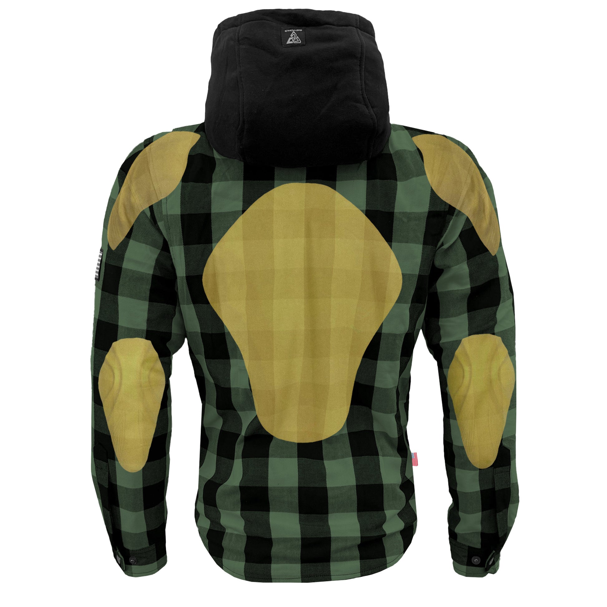 About SALE Protective Flannel Hoodie For Men - Dark Green and Black Checkered with Pads
