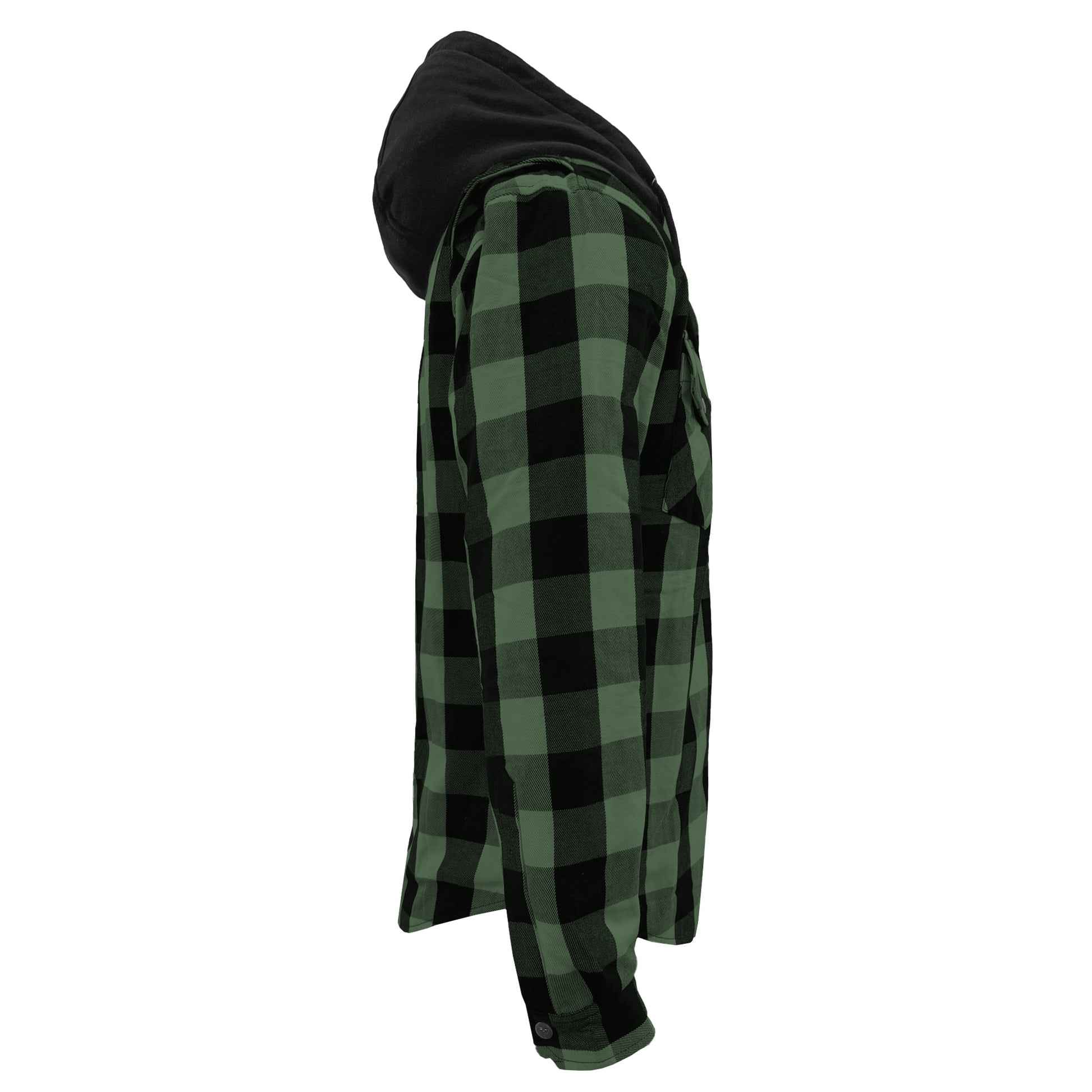 Find your perfect blend of style and safety with the SALE Men's Protective Flannel Hoodie in Dark Green & Black Checkered & Black Fleece Hood with Level 1 pads included. This Beyond Riders' selection is for those who navigate life's journeys with a keen sense of style and a high regard for protection. Ideal for the motorcycle or PEV rider who values a look that’s as versatile as their lifestyle.