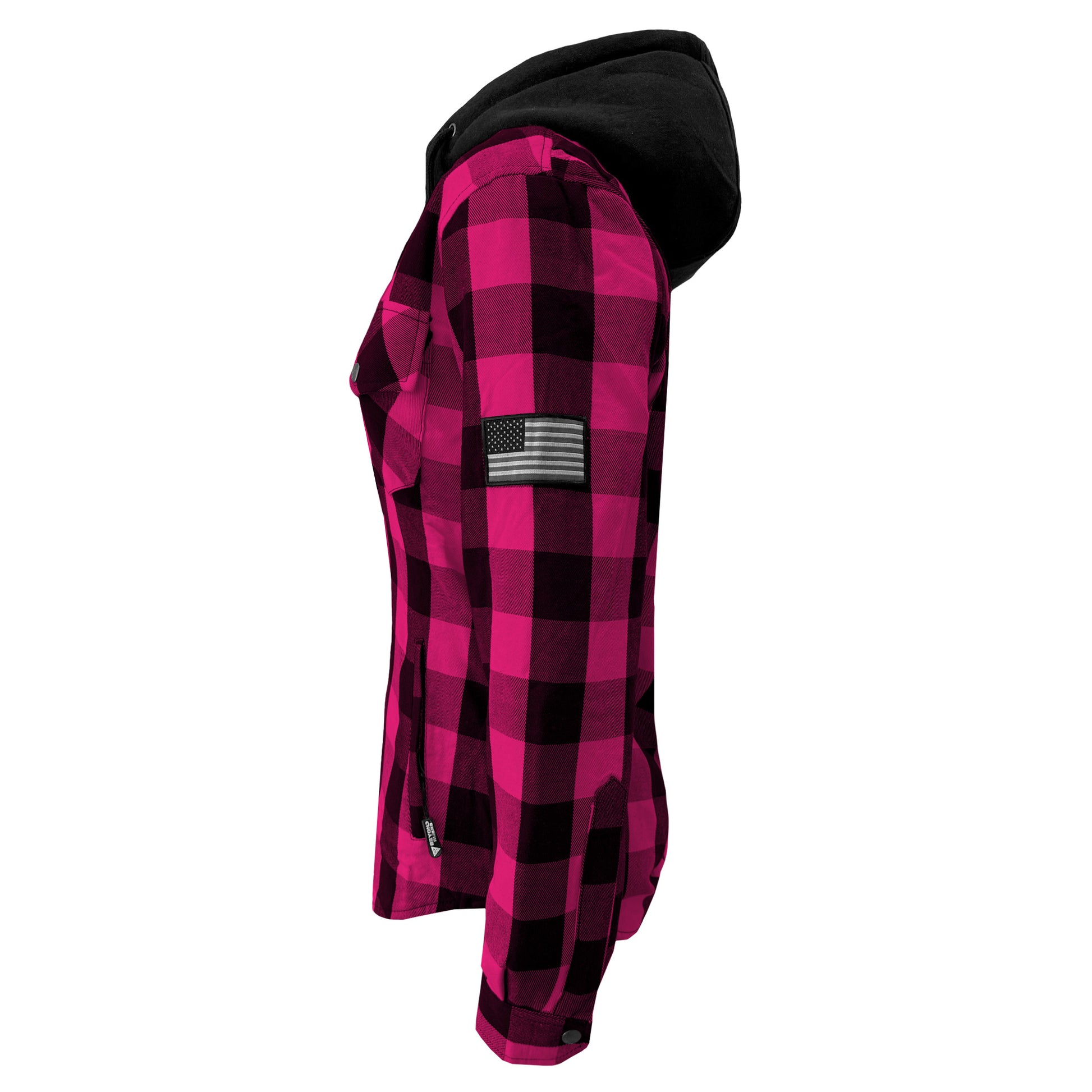 Find your perfect blend of style and safety with the SALE Women's Protective Flannel Hoodie in Pink & Black Checkered & Black Fleece Hood with Level 1 pads included. This Beyond Riders' selection is for those who navigate life's journeys with a keen sense of style and a high regard for protection. Ideal for the motorcycle or PEV rider who values a look that’s as versatile as their lifestyle.
