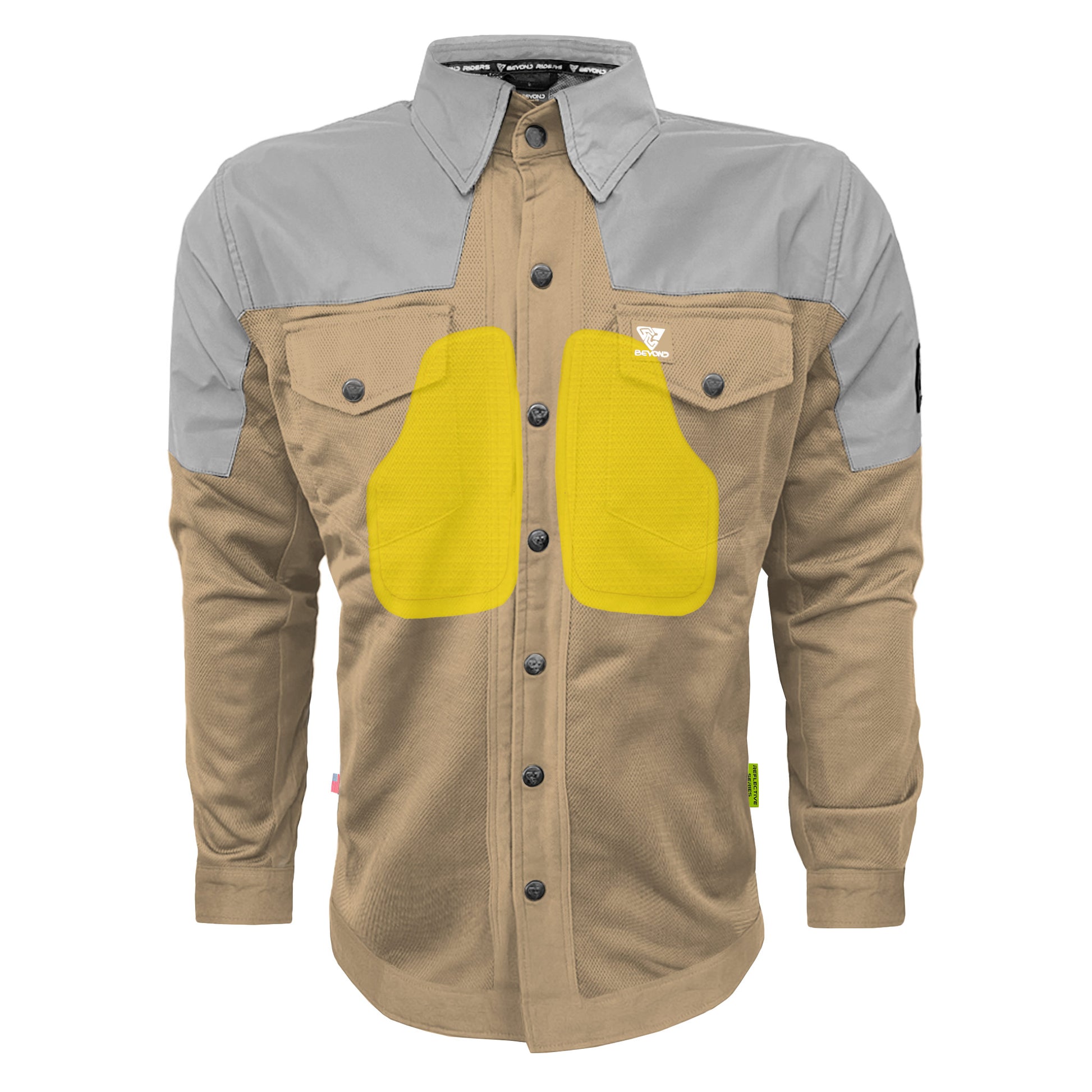 Ride with the allure of summer nights. Beyond Riders SALE Camel Eclipse Shirt with Level 1 pads included blends American style with top-tier protection. Ideal for hot days, it offers cool comfort, and its reflective design shines during nighttime rides for added safety.