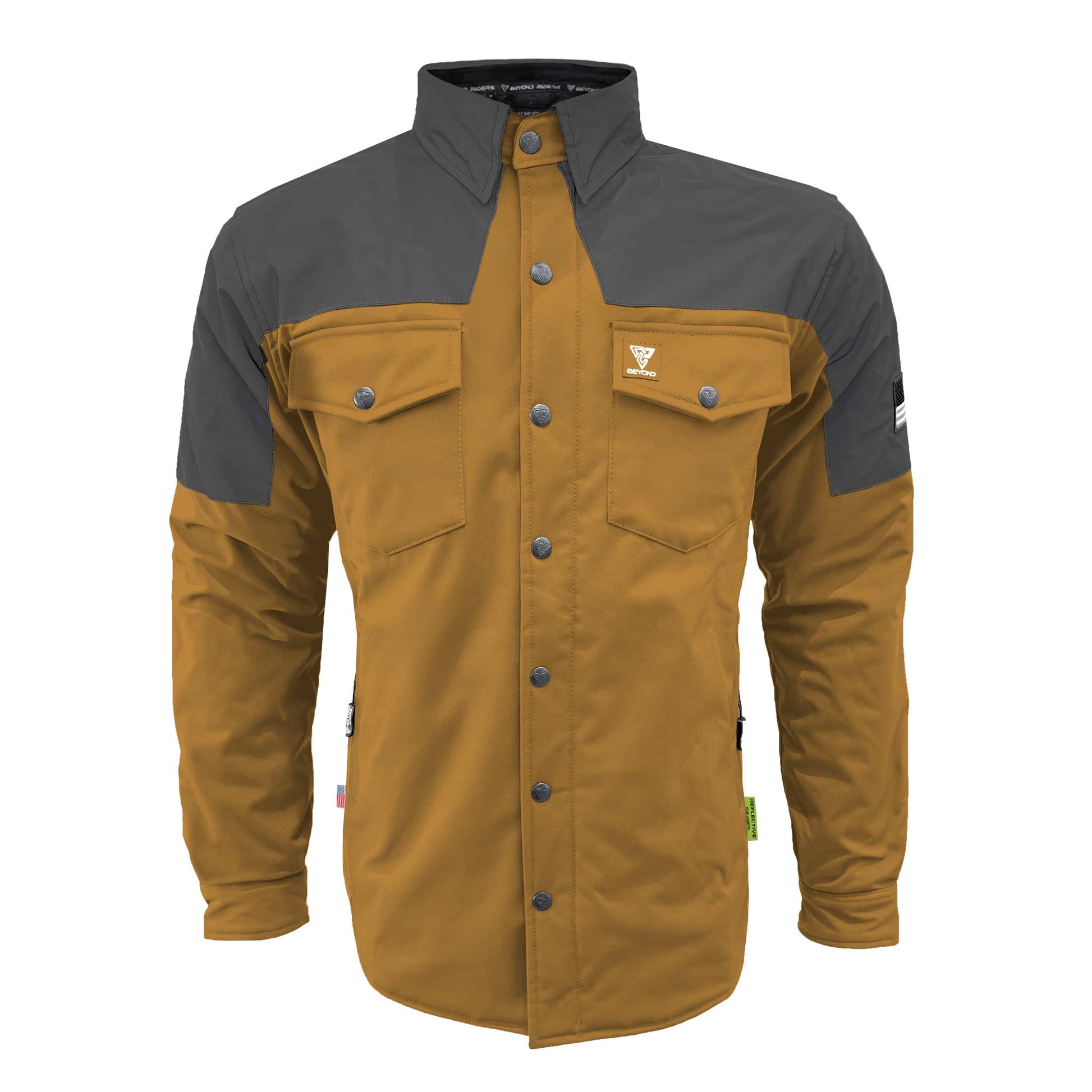 Protective Flannel Shirt - Grey Checkered and Yellow Stripes with Pads