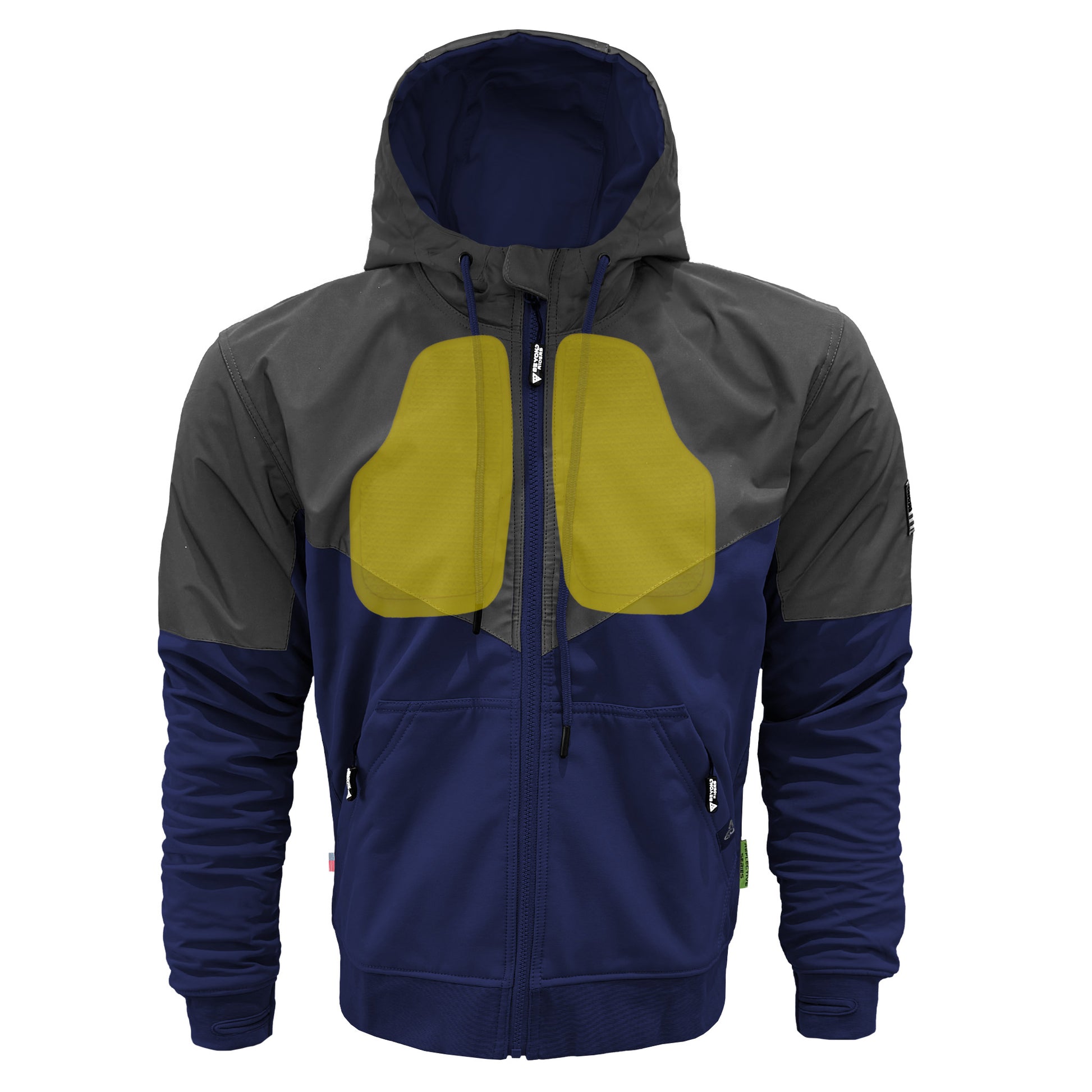 The Softshell Reflective Hoodie Navy Blue Nebula - with Level 1 pads included & Chest Pads is for riders who don't let darkness dim their spirit. It's an essential piece of motorcycle and PEV protective clothing, ensuring that you're visible and comfortable during your nocturnal adventures. Embrace the night with Beyond Riders' commitment to safety and style.
