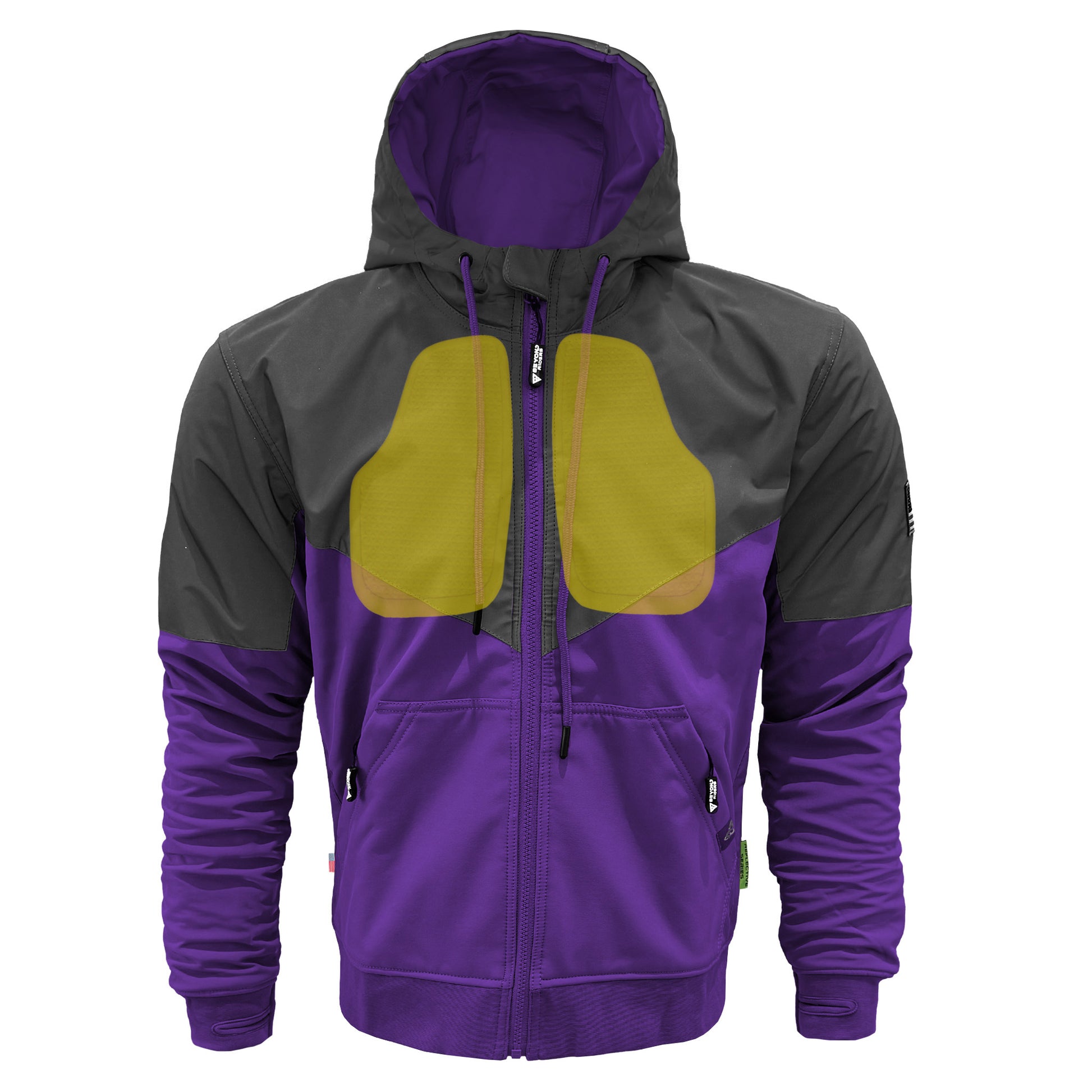 The Softshell Reflective Hoodie Purple Nebula - with Level 1 pads included & Chest Pads is for riders who don't let darkness dim their spirit. It's an essential piece of motorcycle and PEV protective clothing, ensuring that you're visible and comfortable during your nocturnal adventures. Embrace the night with Beyond Riders' commitment to safety and style.