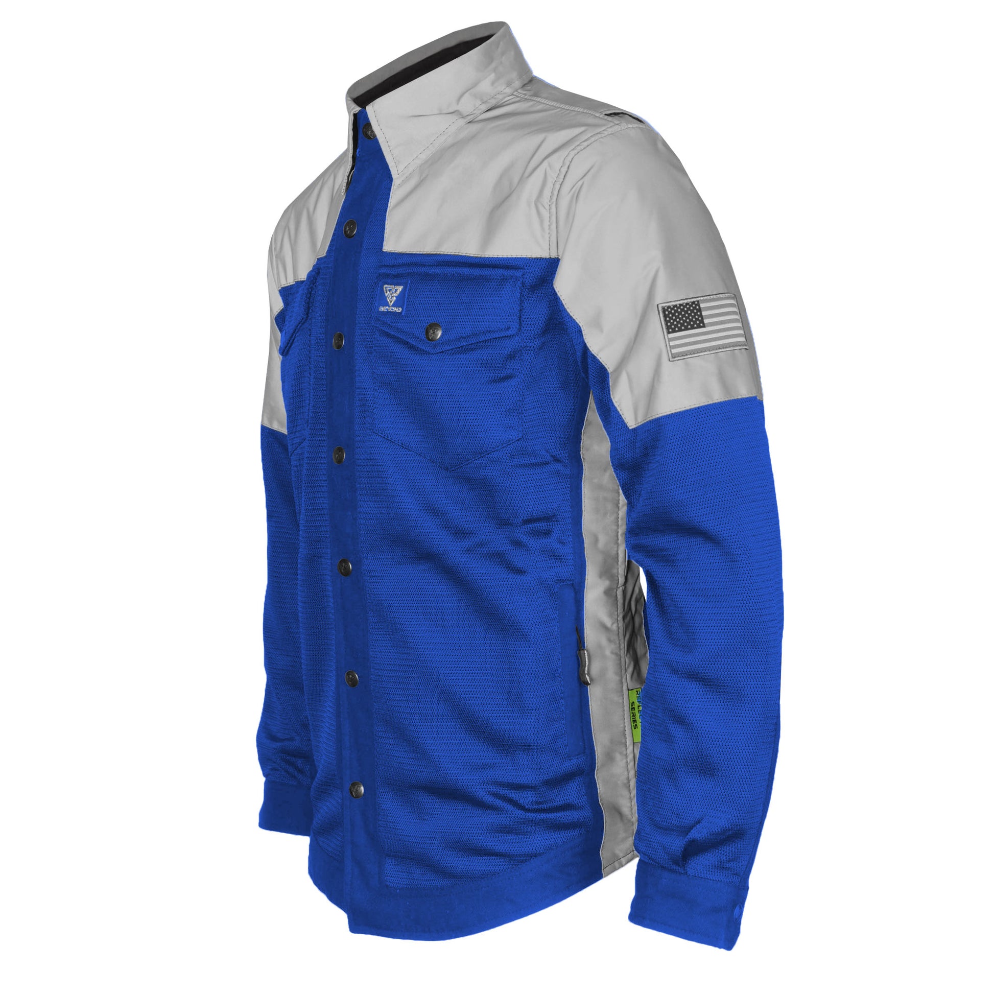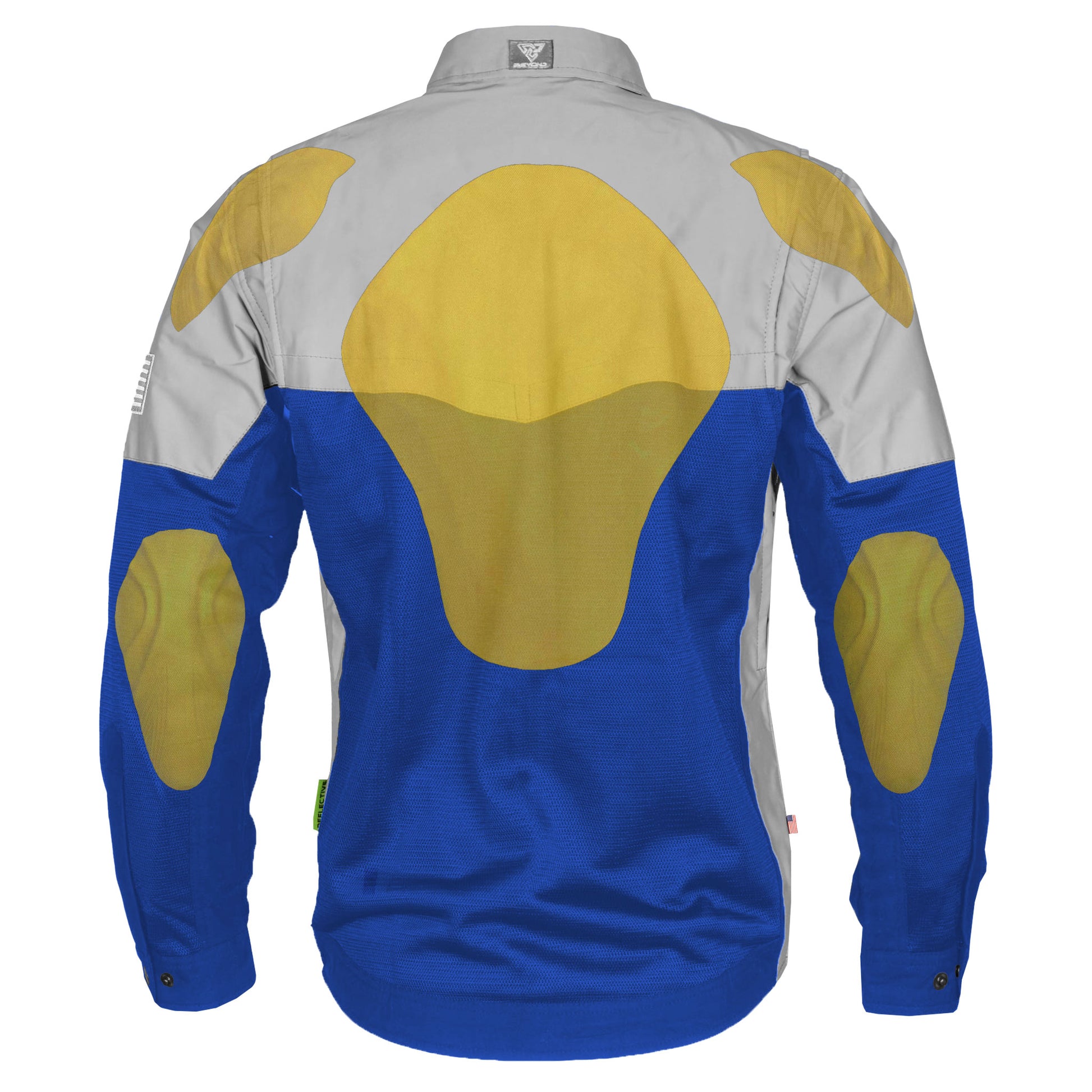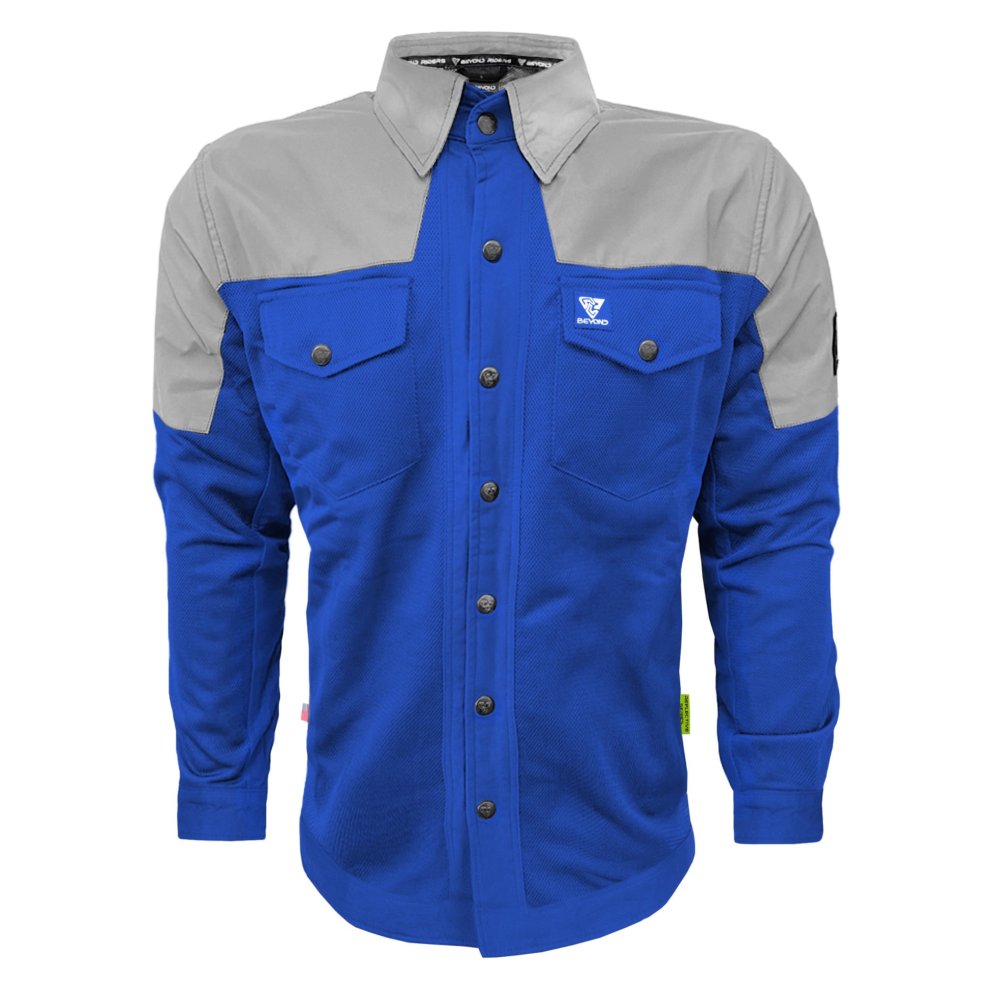 Ride with the allure of summer nights. Beyond Riders Blue Eclipse Shirt with Level 1 pads included blends American style with top-tier protection. Ideal for hot days, it offers cool comfort, and its reflective design shines during nighttime rides for added safety.