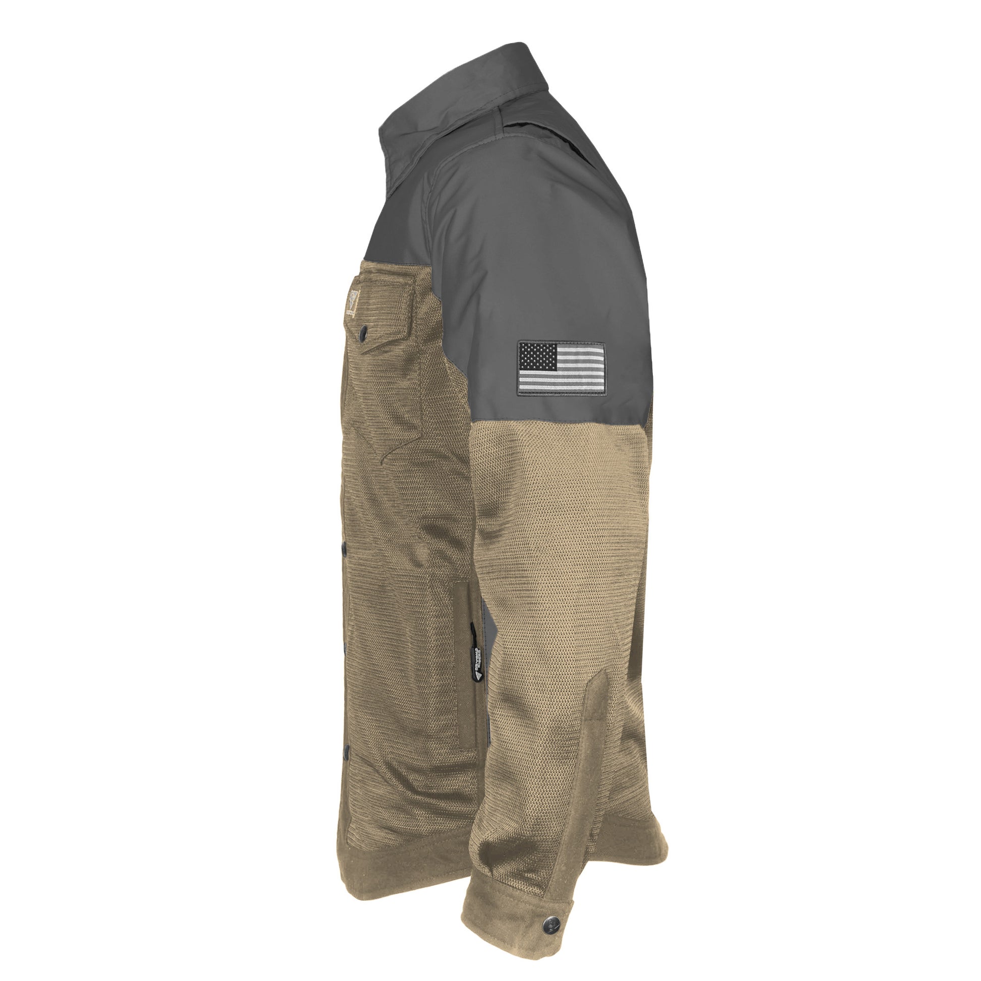 Ride with the allure of summer nights. Beyond Riders Khaki Nebula Shirt with Level 1 pads included blends American style with top-tier protection. Ideal for hot days, it offers cool comfort, and its reflective design shines during nighttime rides for added safety.