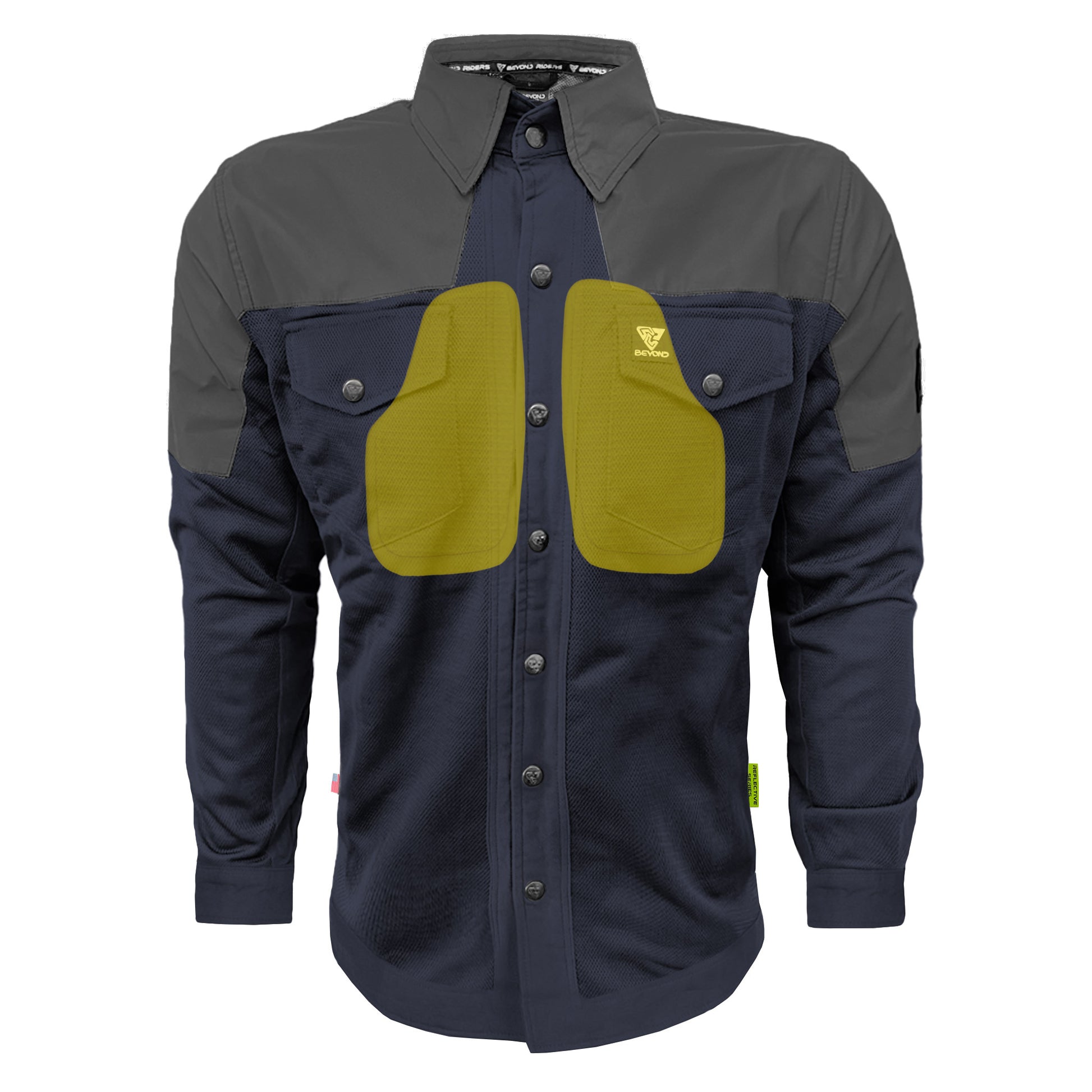 The Navy Blue Nebula Summer Mesh Reflective Shirt with Level 1 pads included awaits. Embark on journeys with the signature touch of Beyond Riders, where each ride is a fusion of adventure, style, and enhanced protection.