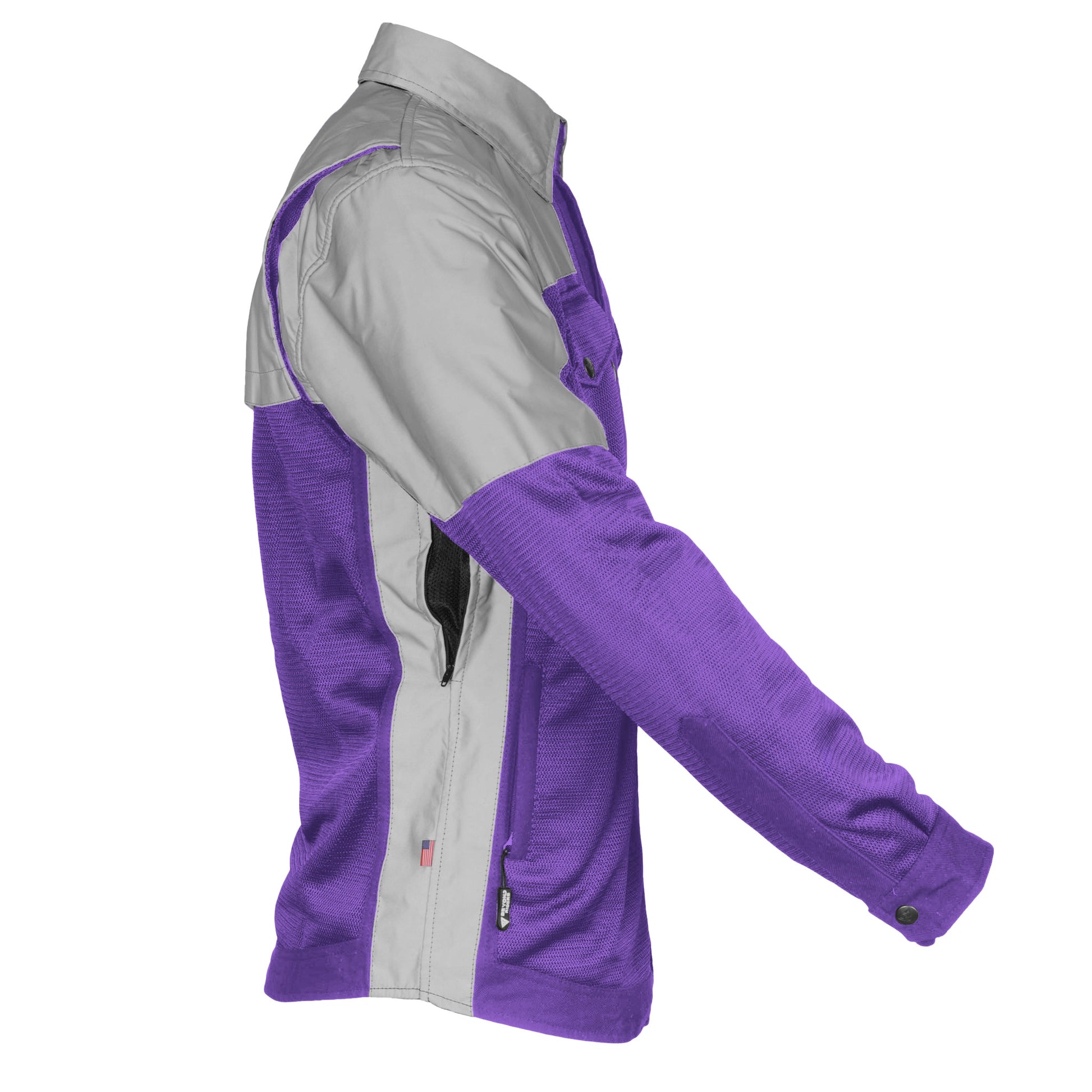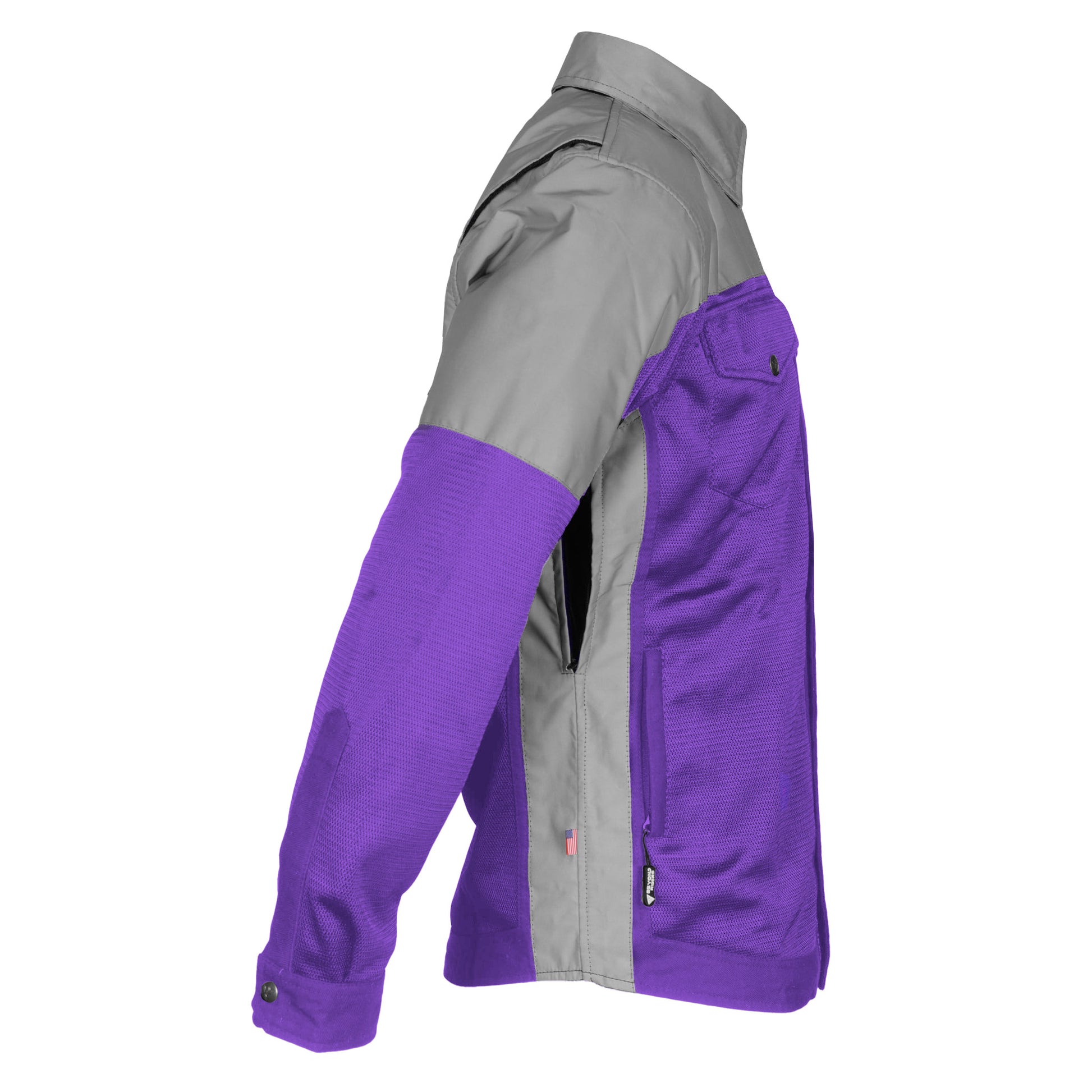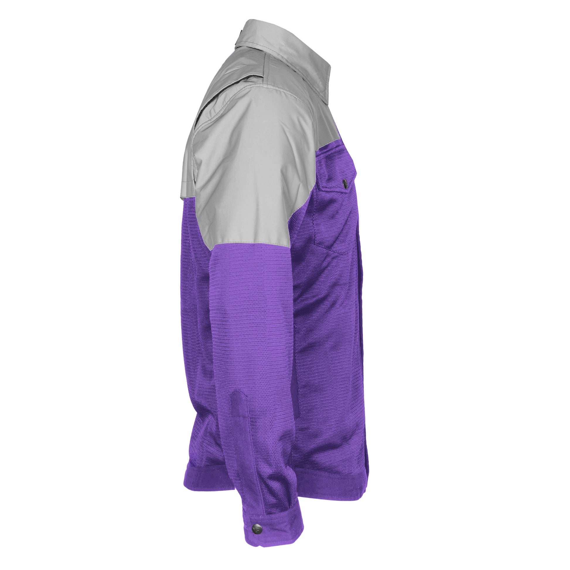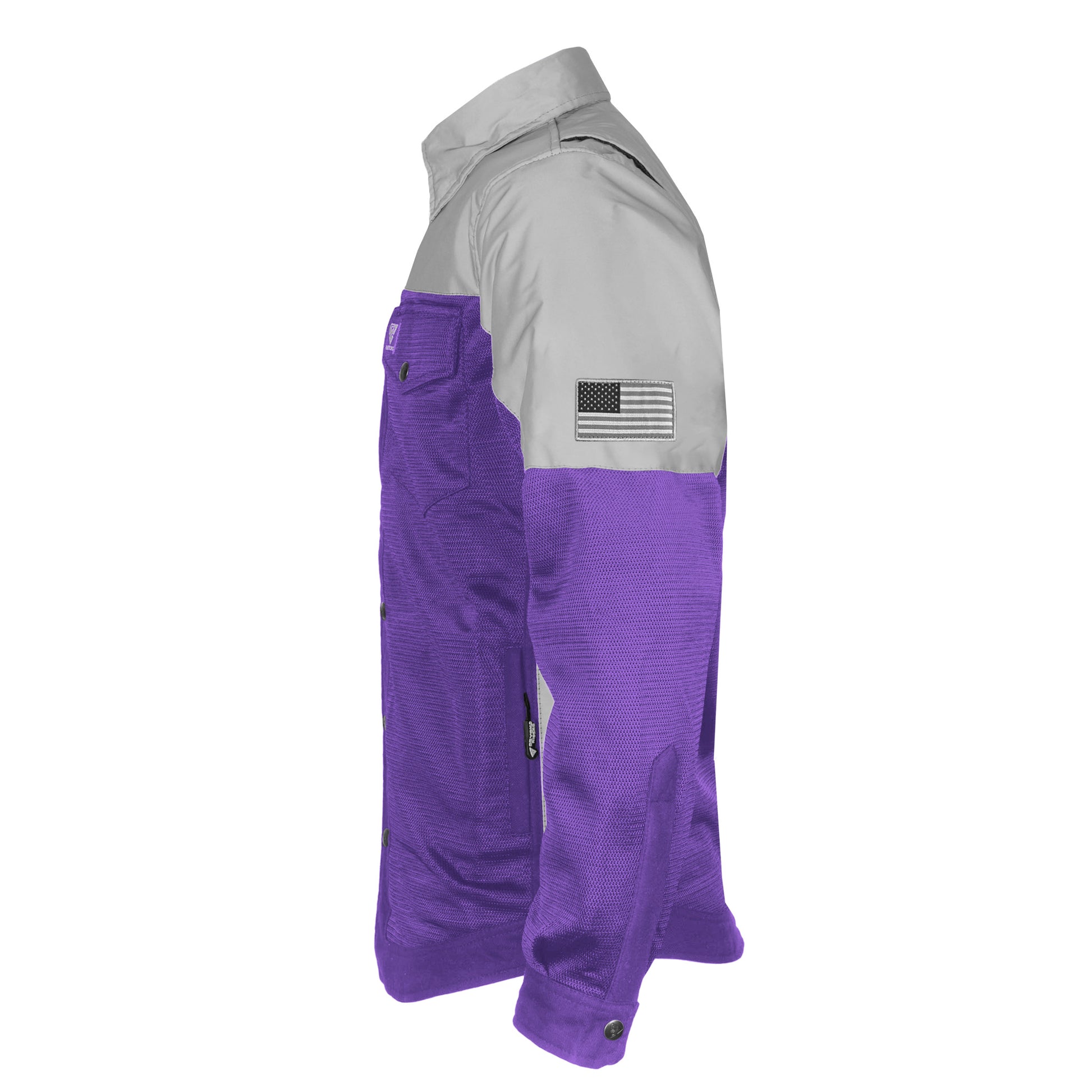 Ride with the allure of summer nights. Beyond Riders Purple Eclipse Shirt with Level 1 pads included blends American style with top-tier protection. Ideal for hot days, it offers cool comfort, and its reflective design shines during nighttime rides for added safety.