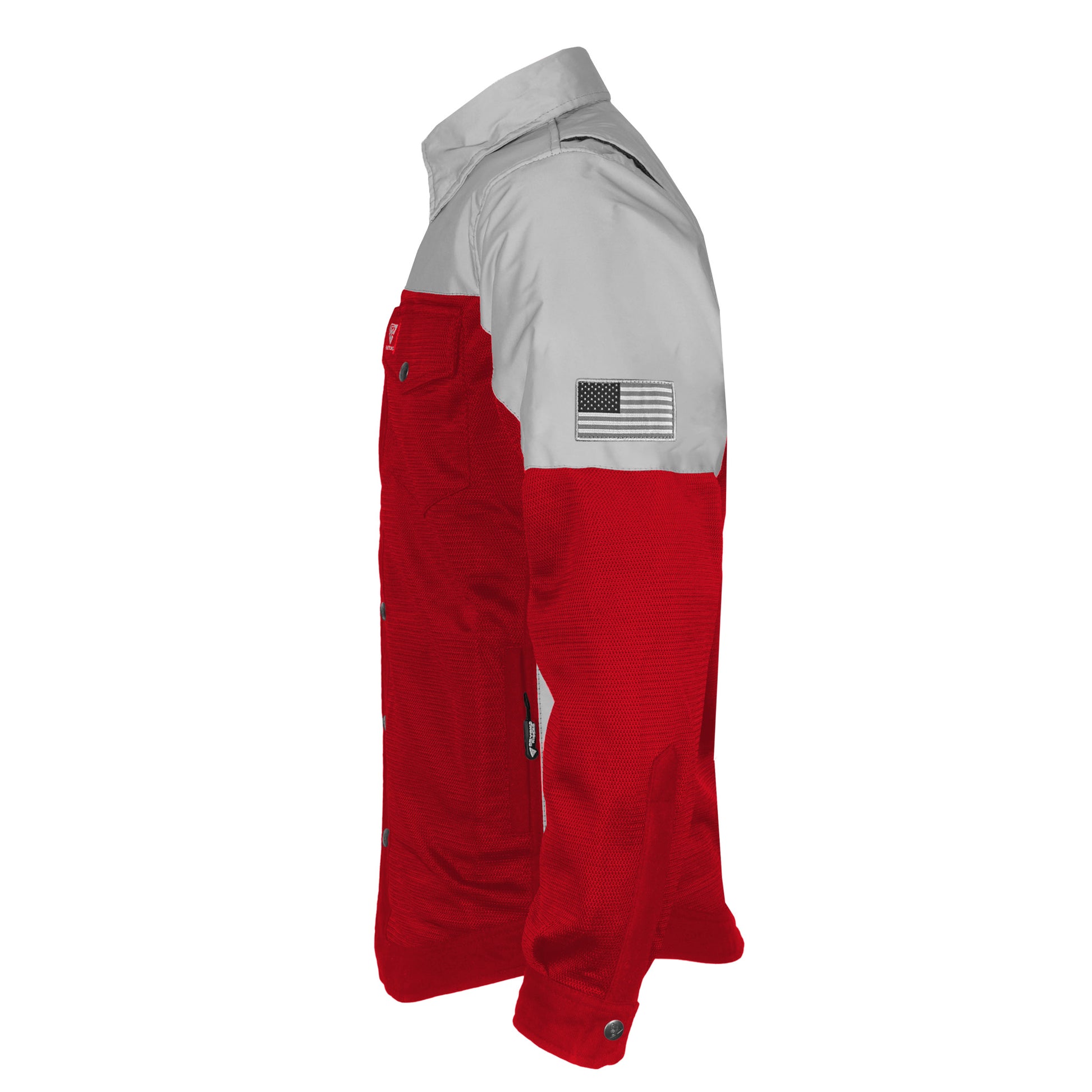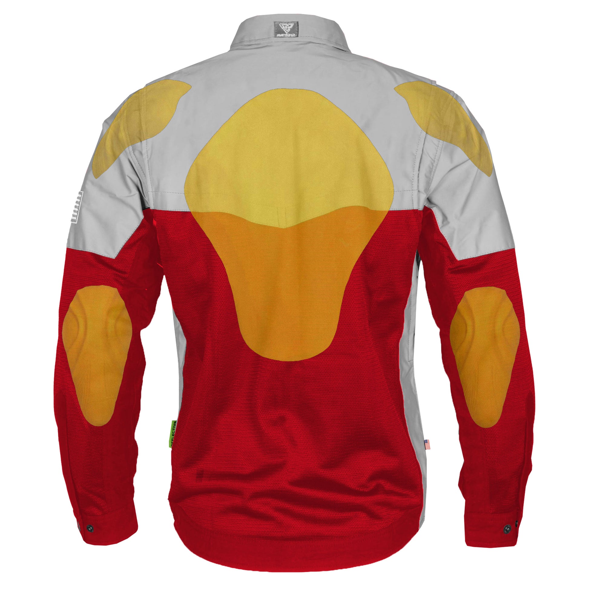 Ride with the allure of summer nights. Beyond Riders Red Eclipse Shirt with Level 1 pads included blends American style with top-tier protection. Ideal for hot days, it offers cool comfort, and its reflective design shines during nighttime rides for added safety.