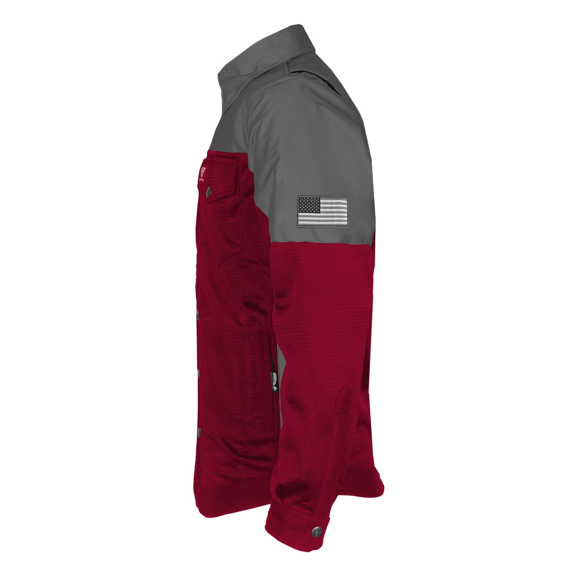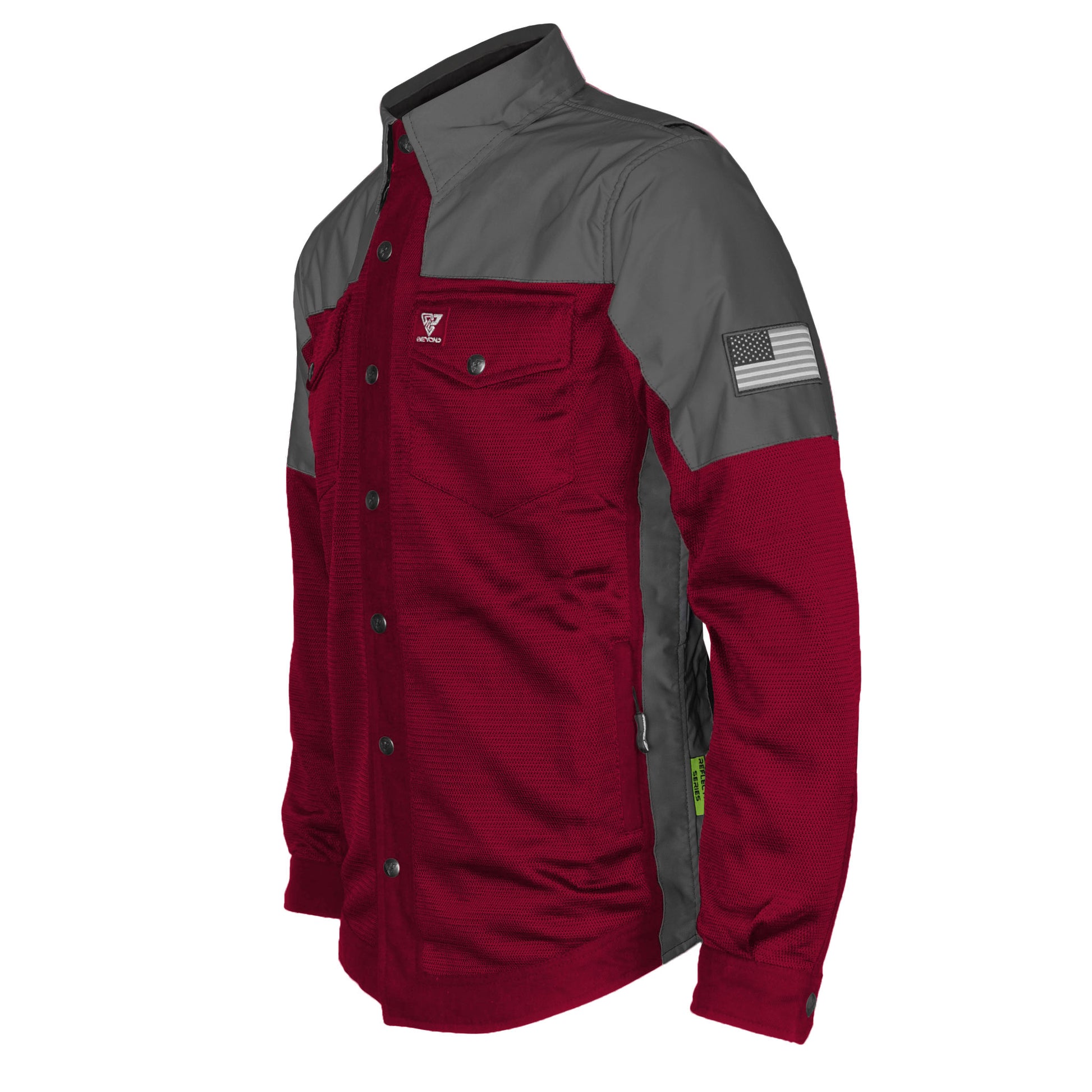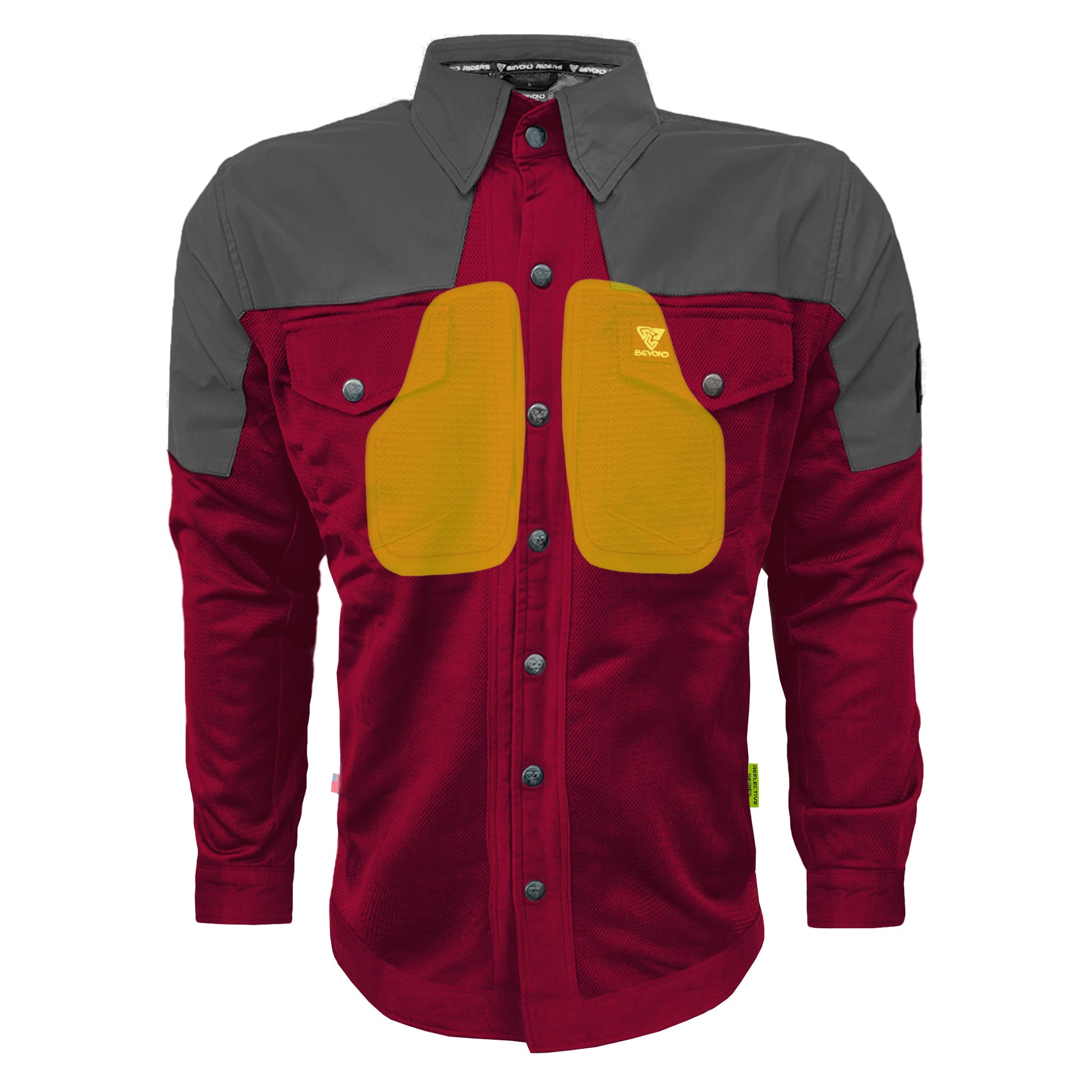 Ride with the allure of summer nights. Beyond Riders Red Maroon Nebula Shirt with Level 1 pads included blends American style with top-tier protection. Ideal for hot days, it offers cool comfort, and its reflective design shines during nighttime rides for added safety.