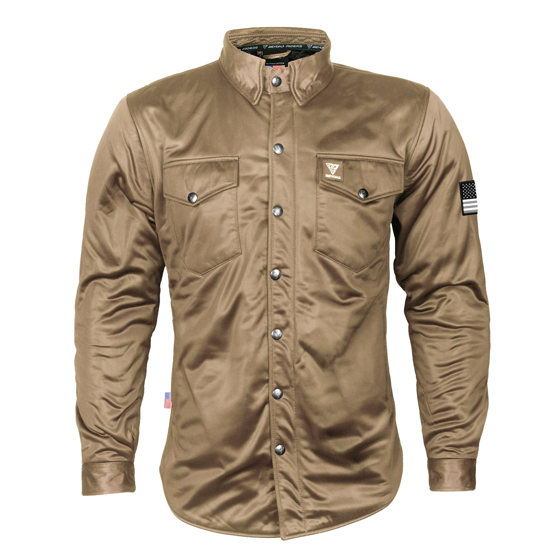 Discover the Men's Ultra Protective Shirt in Camel Solid with Pads, a distinguished addition to Beyond Riders' collection. This shirt is designed for the urban adventurer who values both style and security. Featuring Level 1 pads, it provides robust protection without compromising on aesthetics. Whether you're commuting or exploring new cityscapes, ride with assurance and elegance in a garment that seamlessly fuses fashion with functionality.