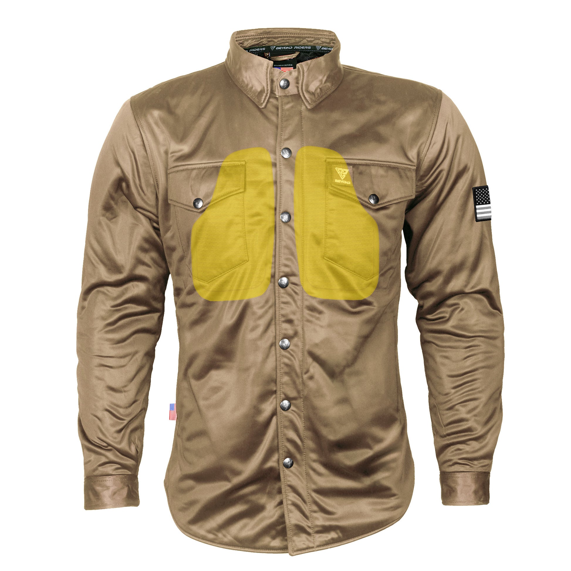 Beyond Riders Camel Solid Ultra Protective Shirts with a full set of Level 1 pads and additional chest pads included are made from breathable fabric and have been designed for adventurous riders! This stylish and comfortable lightweight button-up shirt provides riders with essential protection. The revolutionary design allows for maximum airflow that keeps your body cool even during the most challenging rides.The Ultra Protective Shirt offers abrasion resistance and features extra chest protection to keep you safer and let you ride harder.