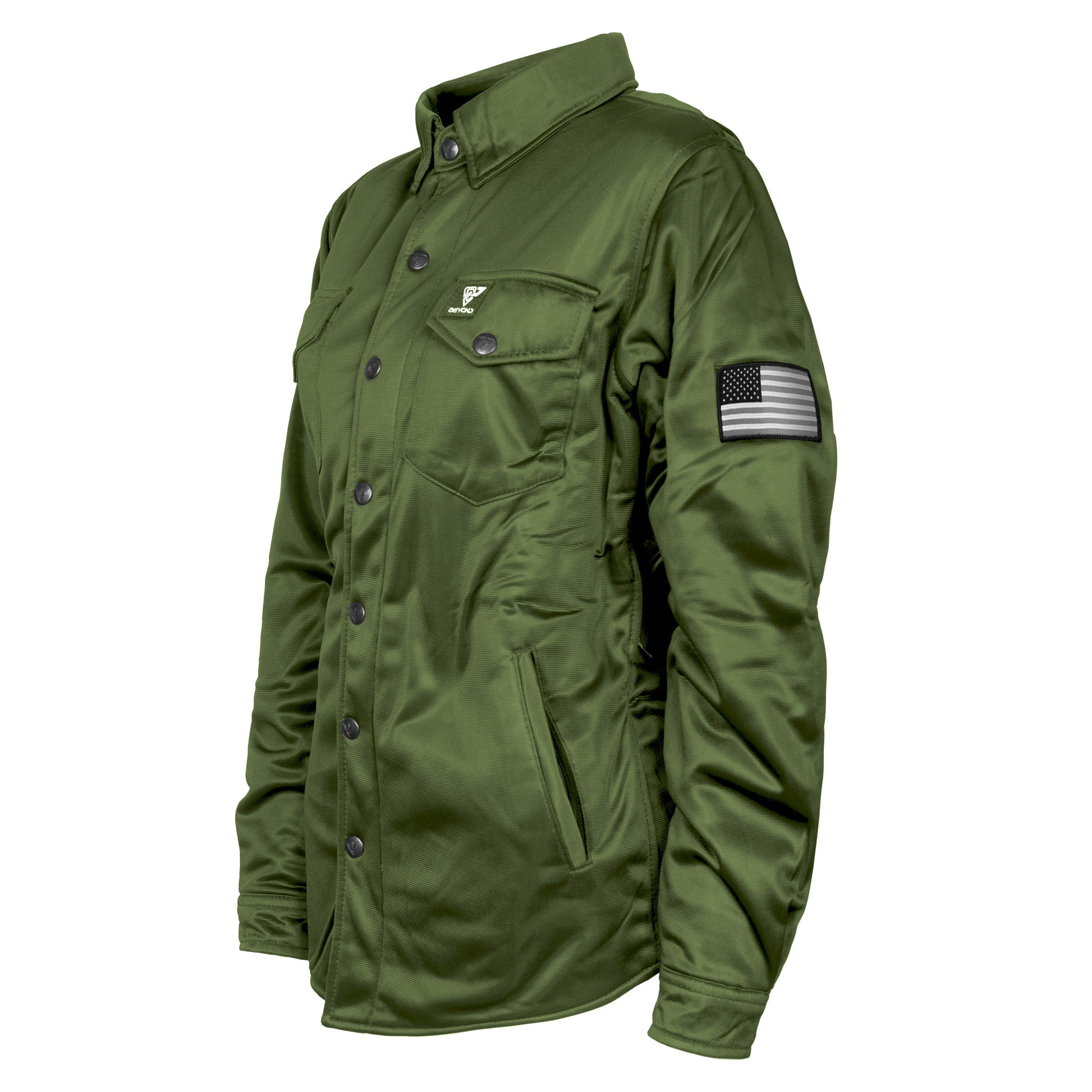 Beyond Riders Army Green Solid Ultra Protective Shirts with a full set of Level 1 pads and additional chest pads included, made from breathable fabric! This stylish and comfortable lightweight button-up shirt provides riders with essential protection. The revolutionary design allows for maximum airflow that keeps your body cool even during the toughest of rides.