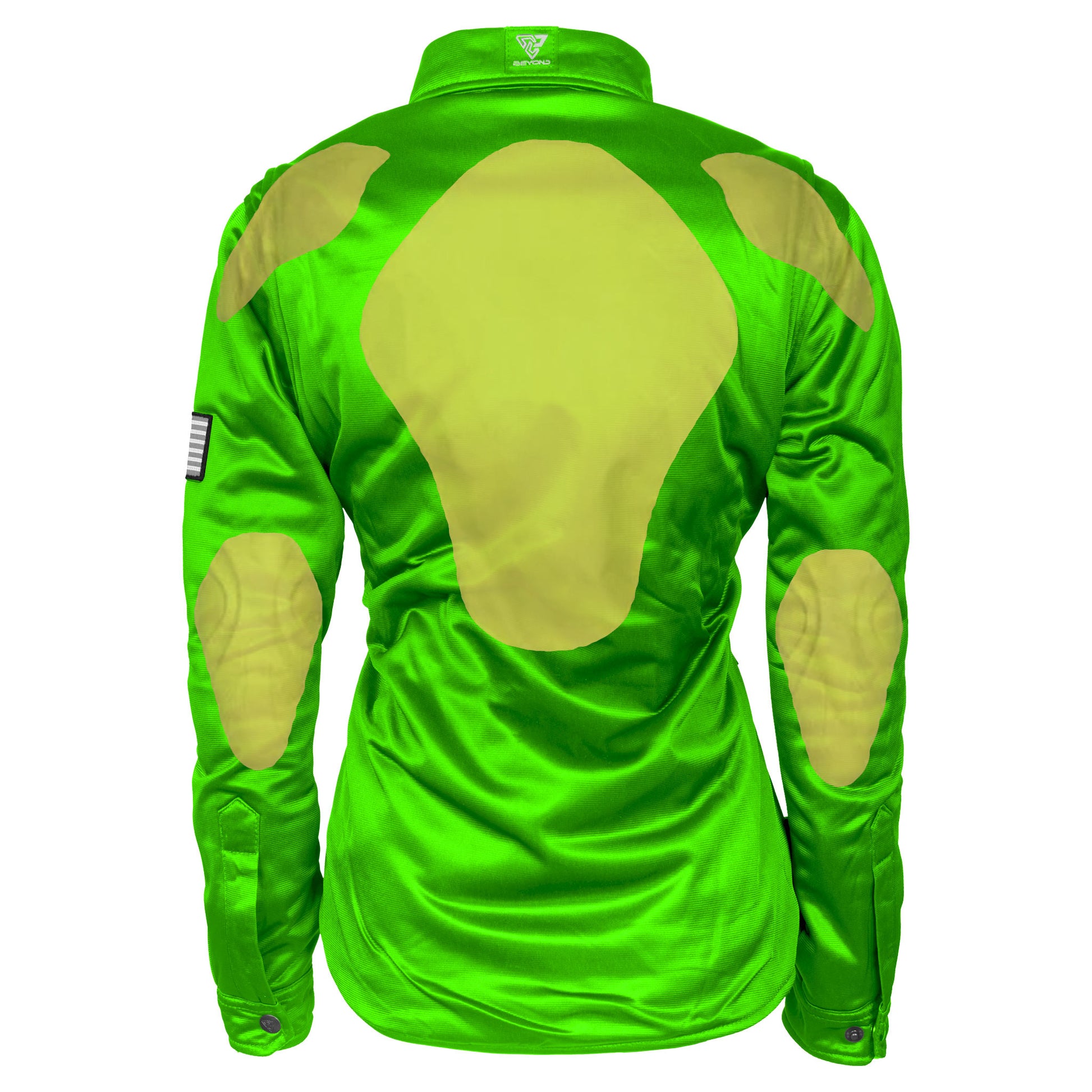 Embark on your next adventure with confidence in the Women's Green Solid Ultra Protective Shirt with Level 1 pads included. Ideal for riders who value both safety and style, this shirt by Beyond Riders is perfect for urban commutes and countryside escapes alike. Offering unmatched protection and a sleek design, it caters to those who seek to fuse superior motorcycle gear with the versatility required for personal electric vehicles.